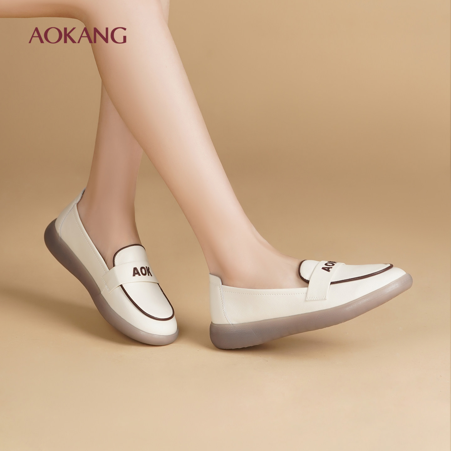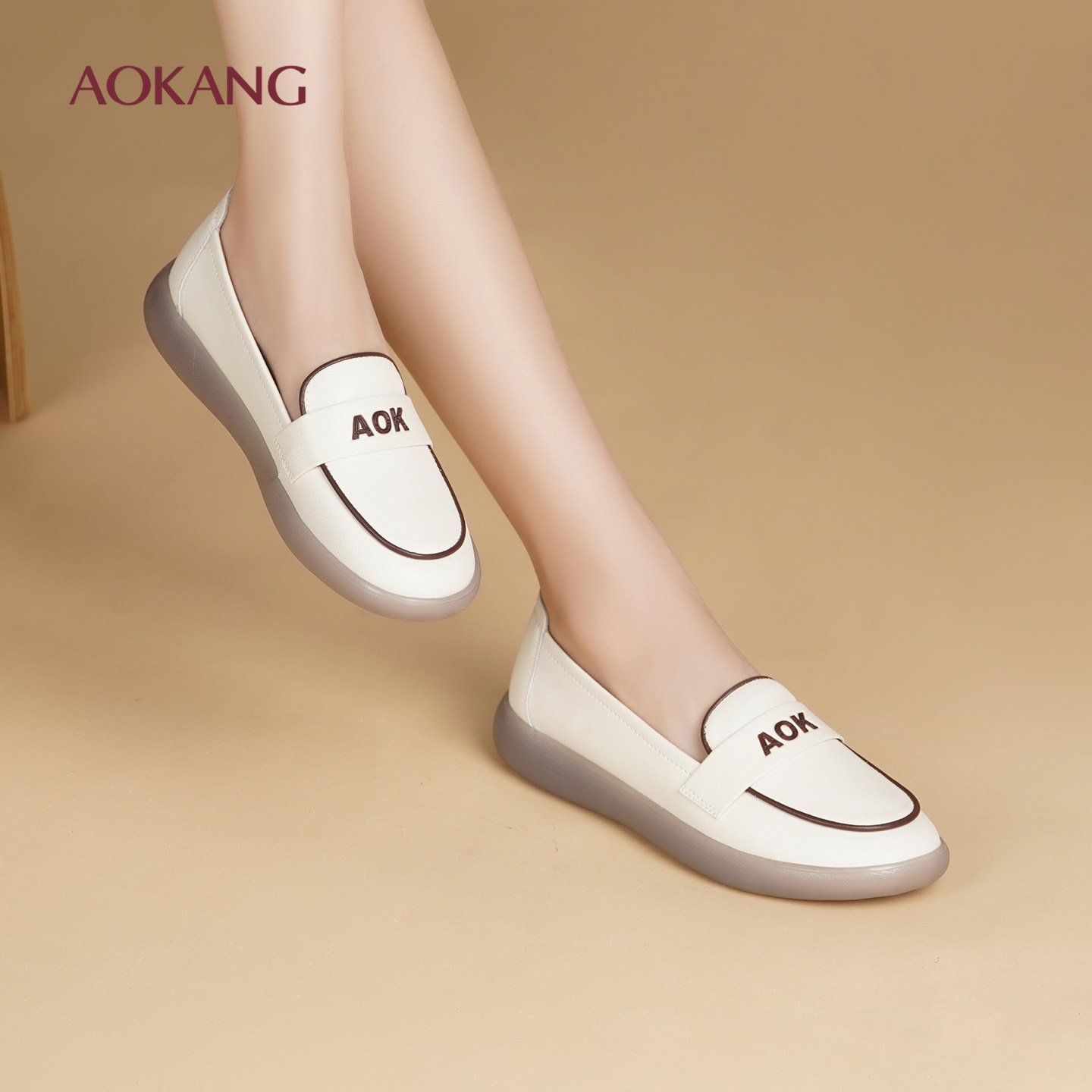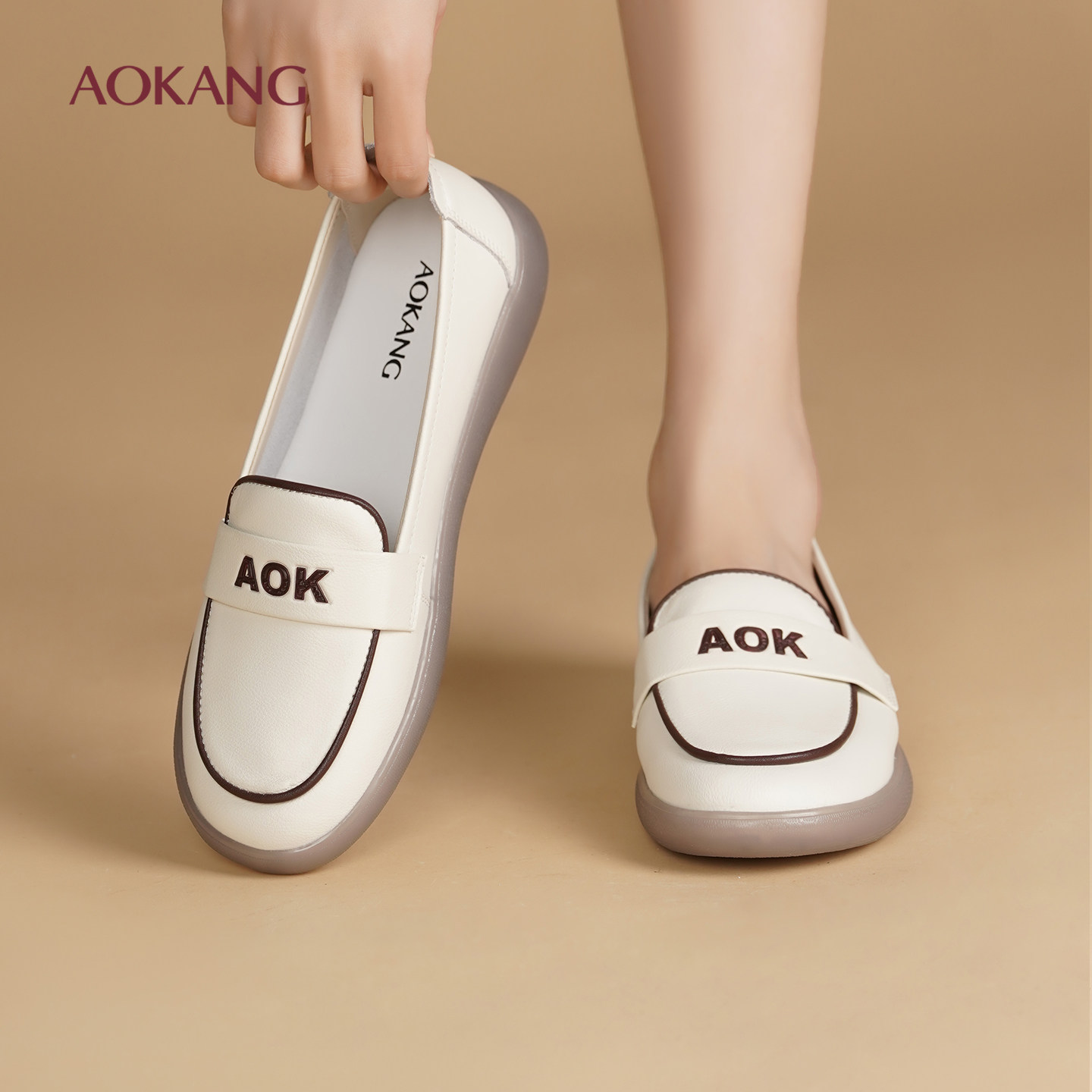 奥康 女鞋2026春季新款平底妈妈鞋软面一脚蹬舒适乐福鞋豆豆鞋L