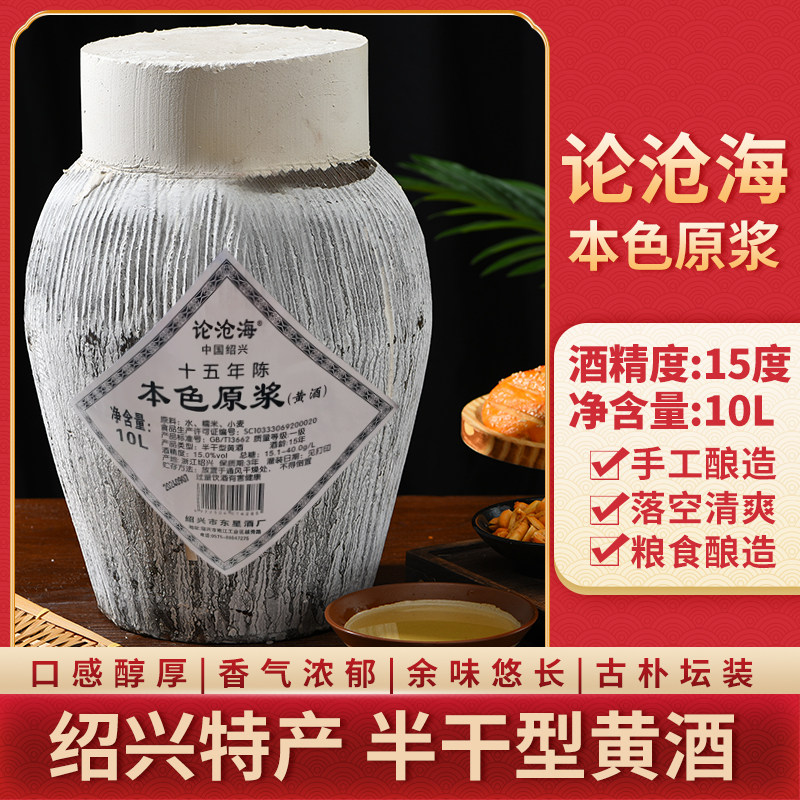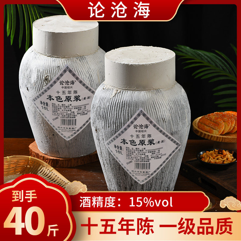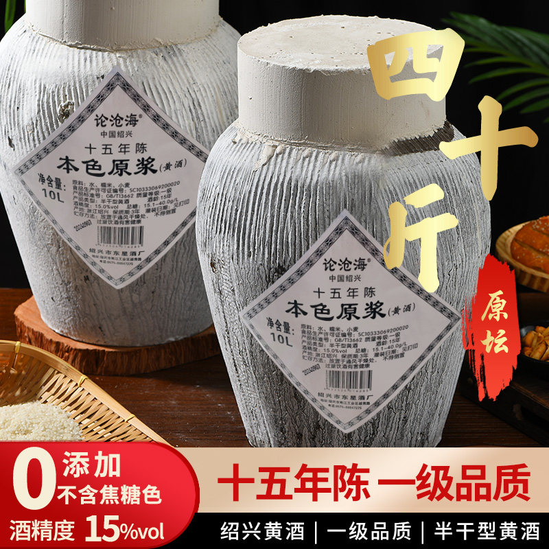 绍兴一级本色黄酒原酒15年陈15°无添加剂花雕酒糯米黄酒坛装20斤