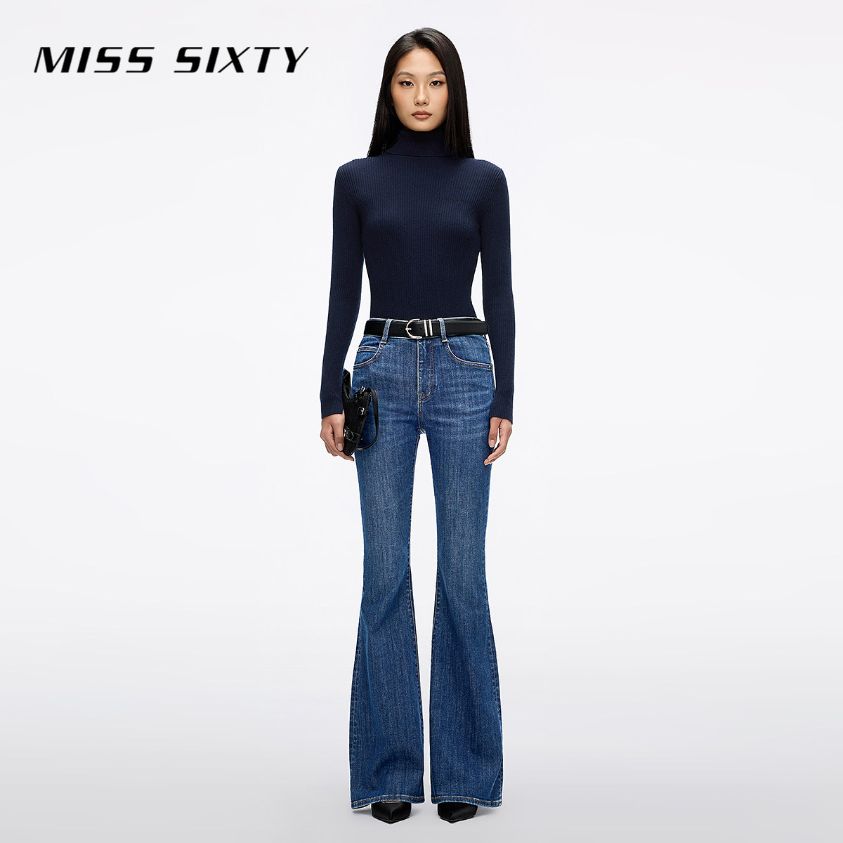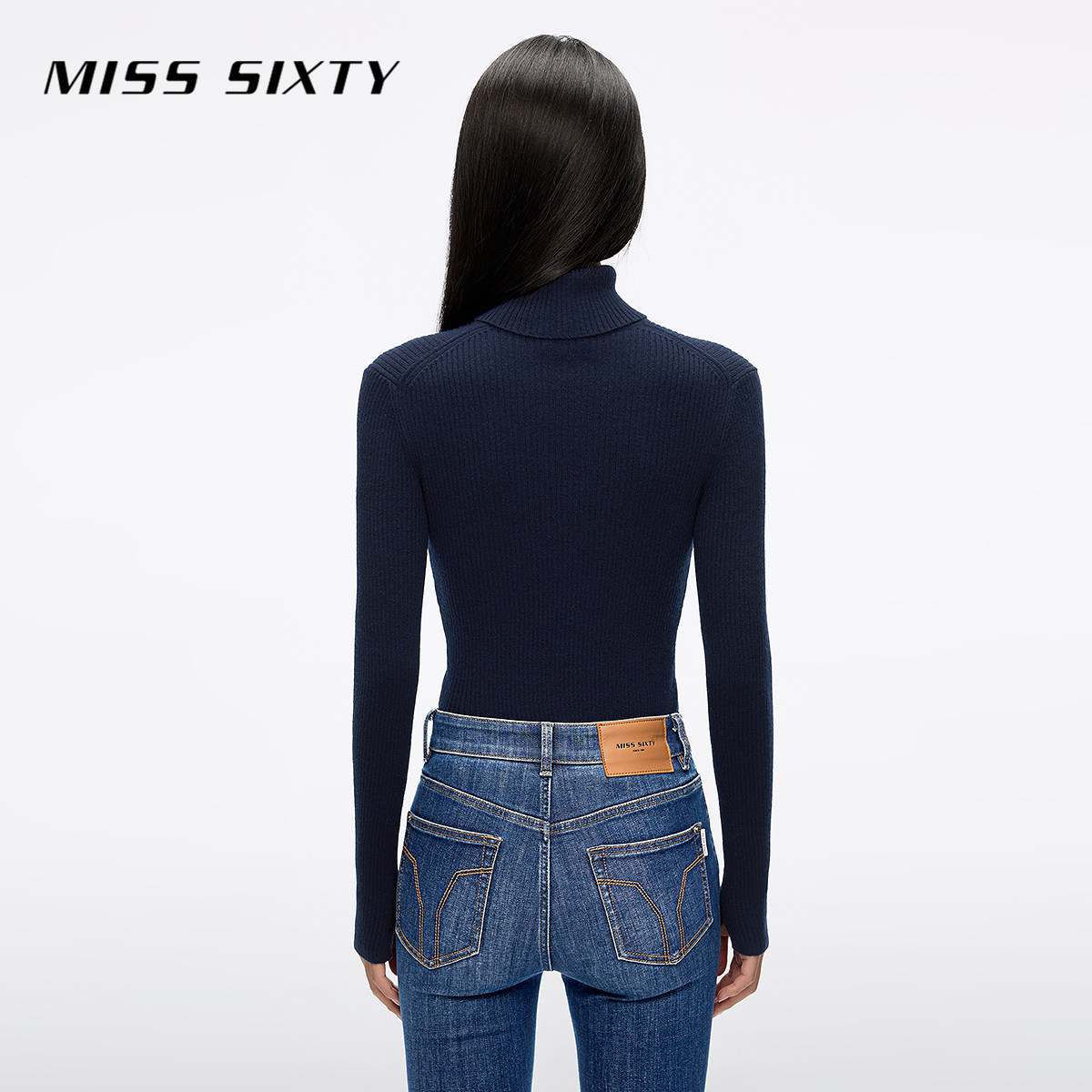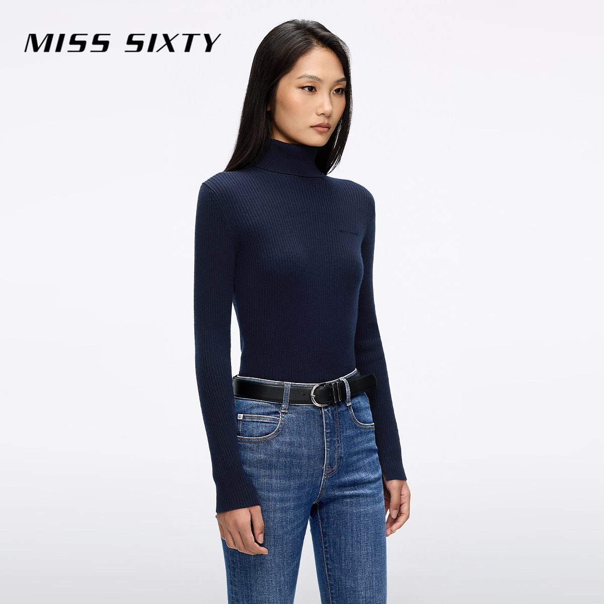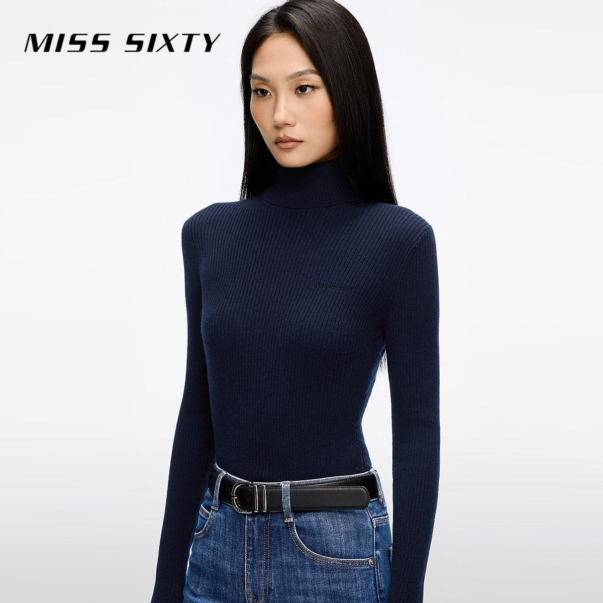 【保暖羊毛羊绒】Miss Sixty25秋新款针织衫高领紧身长袖毛衣