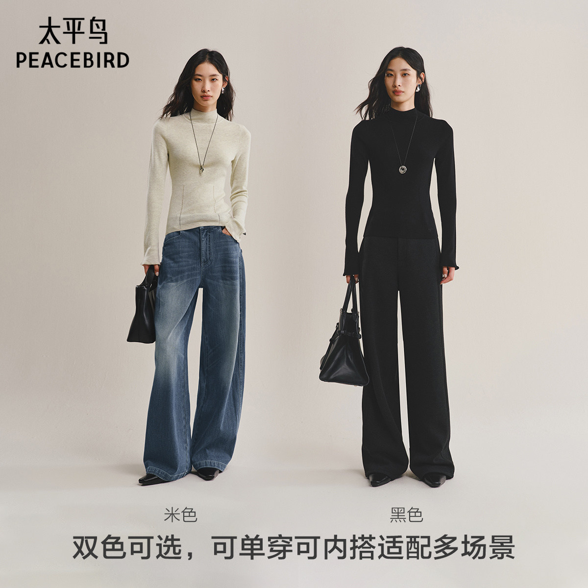 太平鸟羊毛桑蚕丝混纺半高领套头打底衫25冬季新款修身多搭针织衫