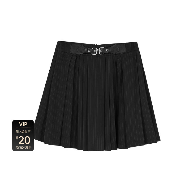 【sdeer奥莱】圣迪奥秋腰带拼接撞色条纹百褶短裙S21361303