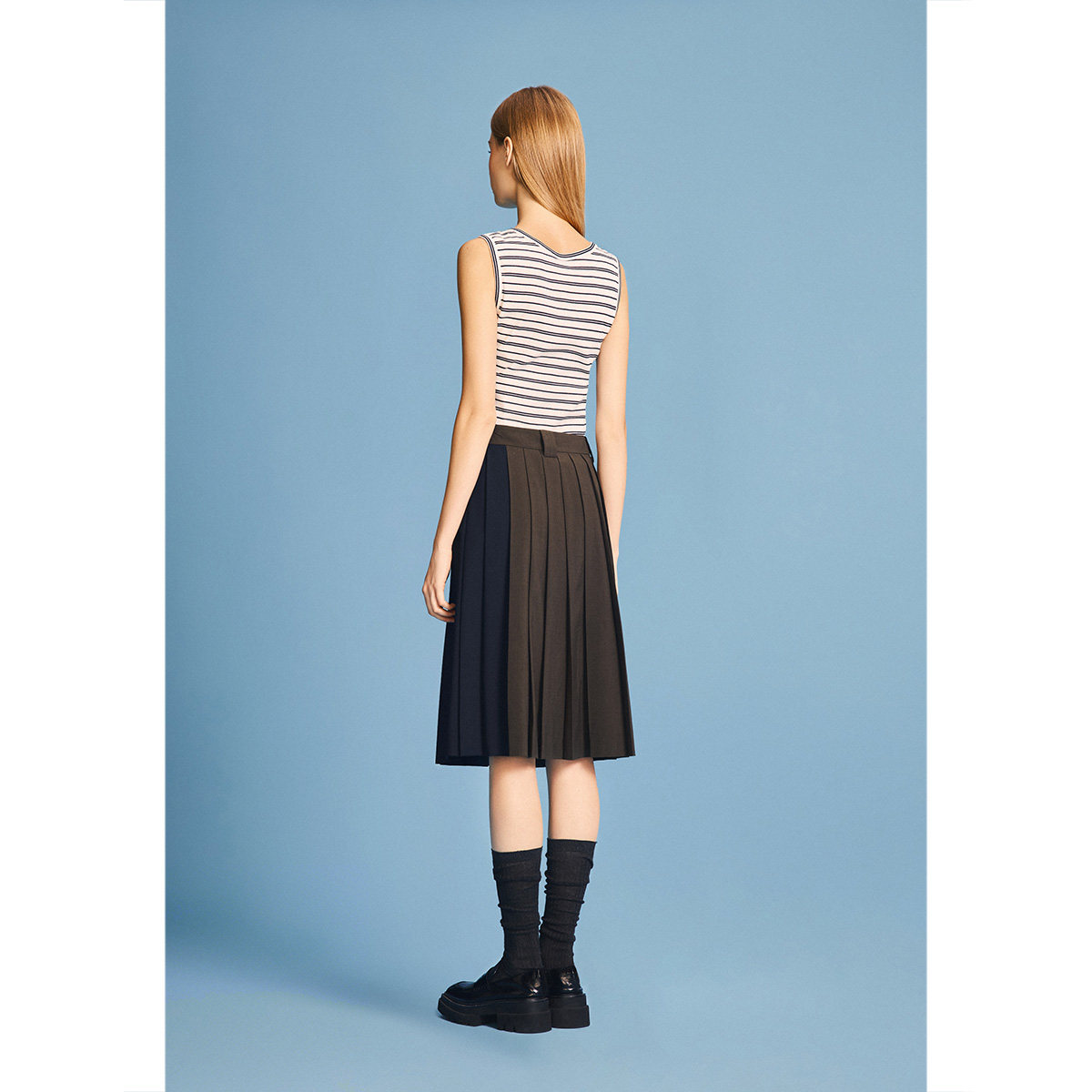 【周雨彤同款】PSALTER诗篇撞色拼接百褶裙复古短裙2026春季新款