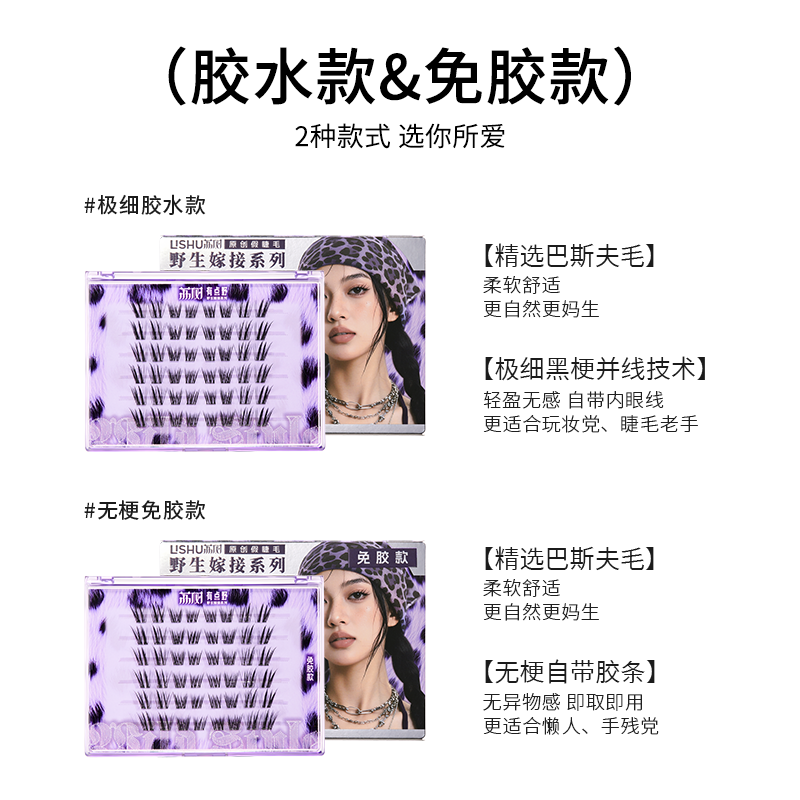 荔树有点野生假睫毛女2025新款自然免胶新手嫁接单簇胶水款仿真