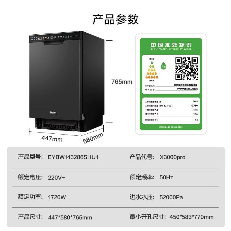 [政府补贴]海尔X11/S洗碗机双面洗14套嵌入式窄家用全自动大容量