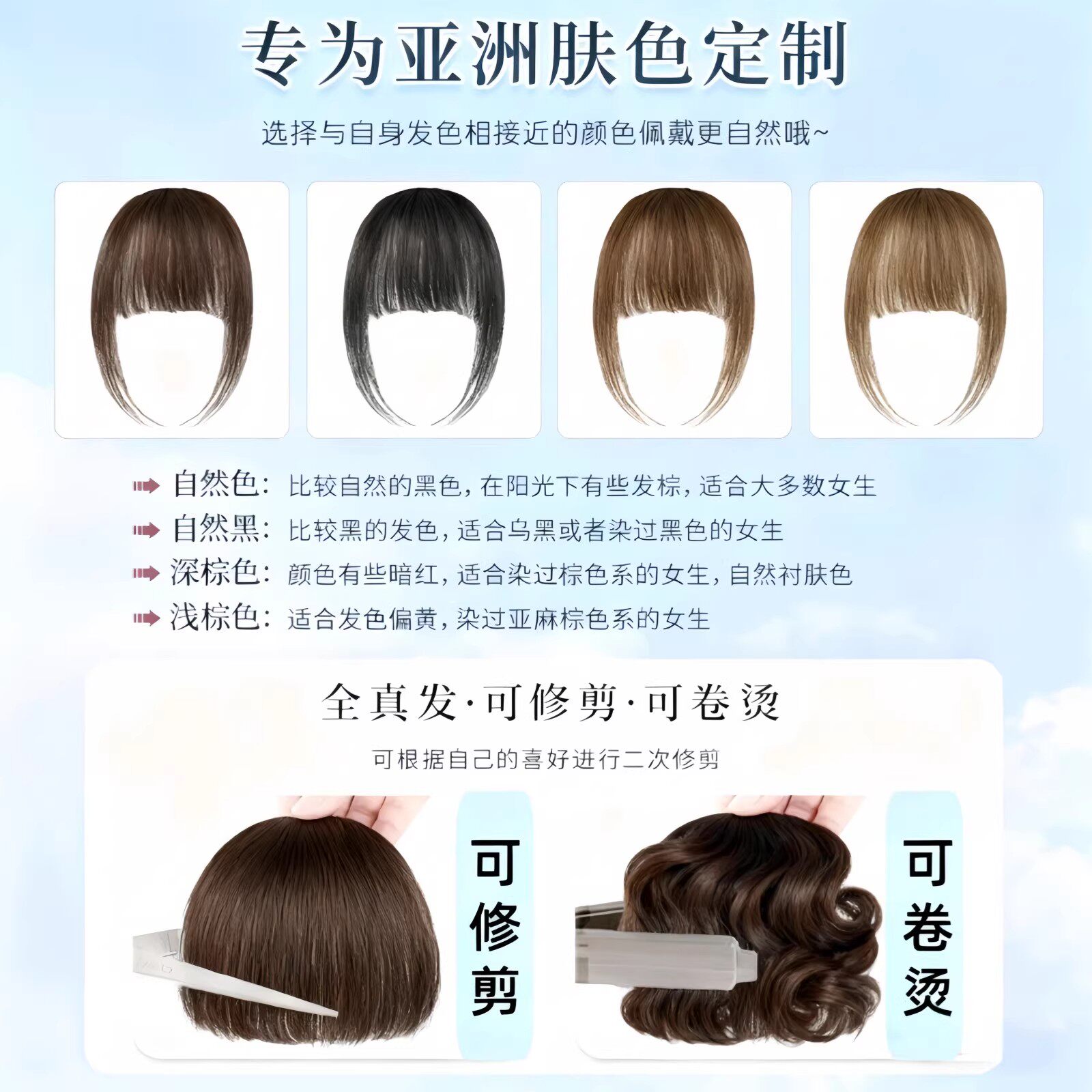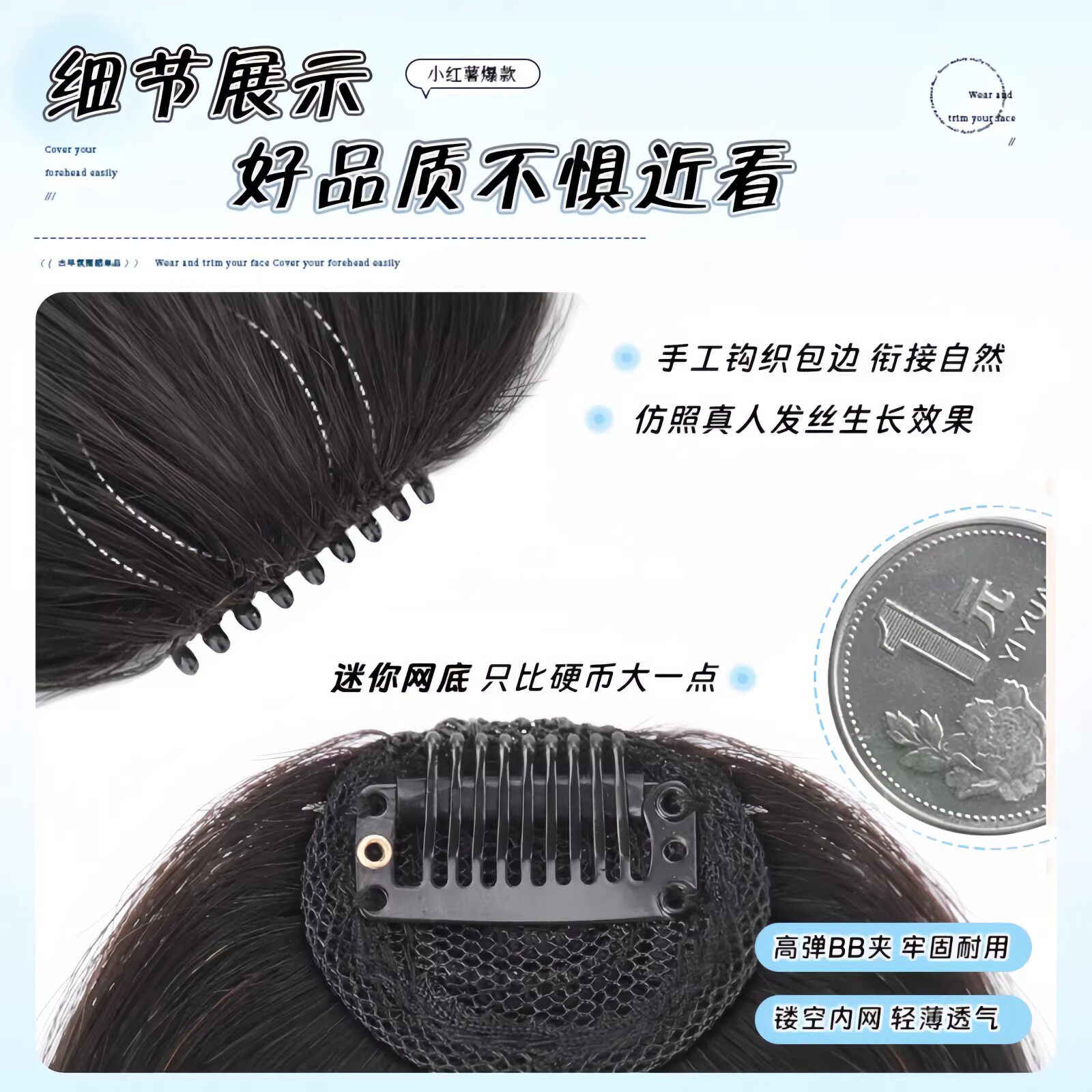 漫画刘海假发女自然前额全真发无痕假发片头顶假刘海鬓角额头遮盖