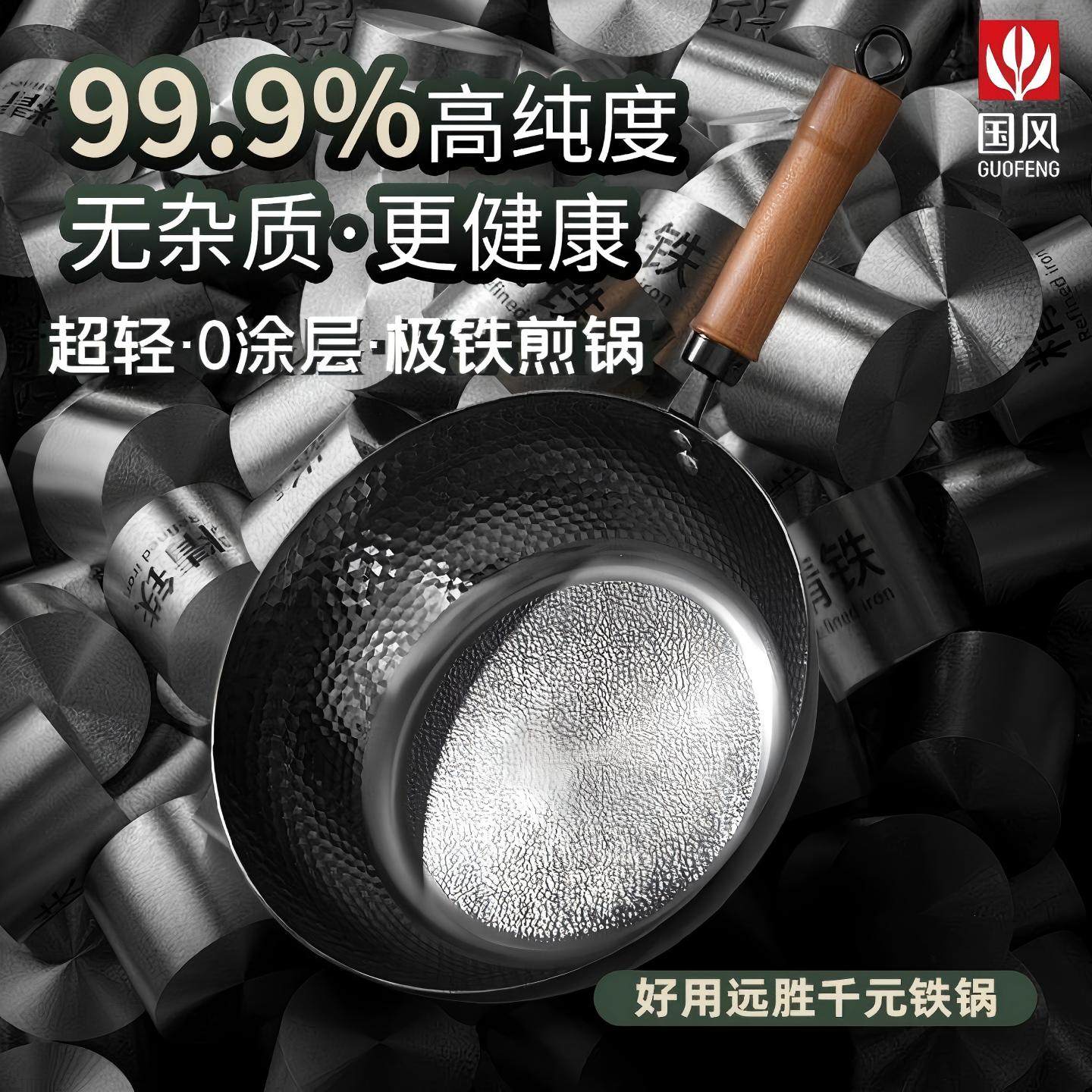 聚油轻油煎锅无涂层防锈纯铁家用燃气电磁炉平底铁煎锅锤纹极铁锅
