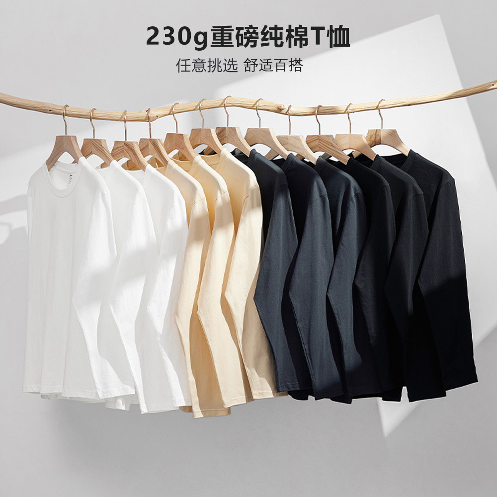 新疆棉400g重磅纯棉长袖t恤秋冬宽松纯白色打底衫内搭加厚男女款