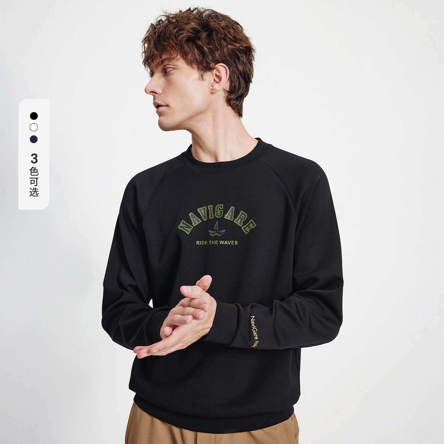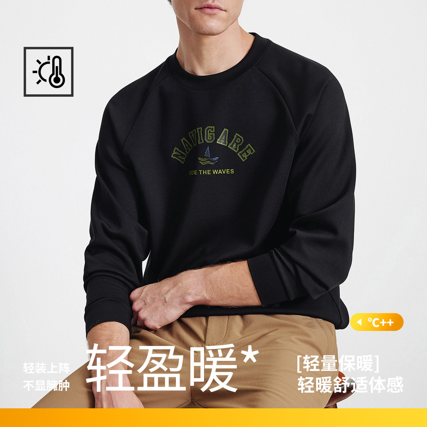 Navigare意大利小帆船黑色长袖T恤男26春季新款空气层保暖体恤衫