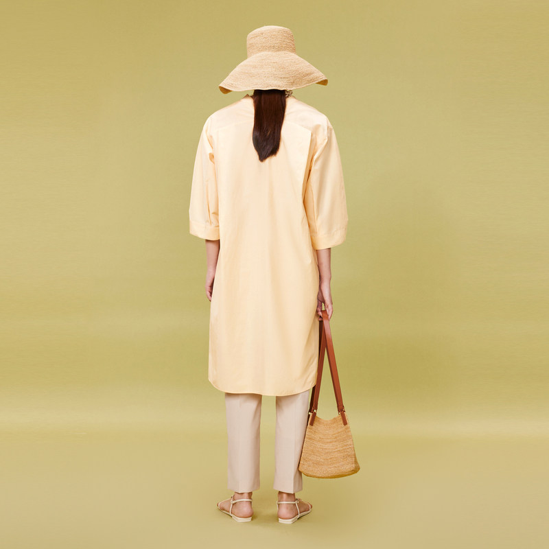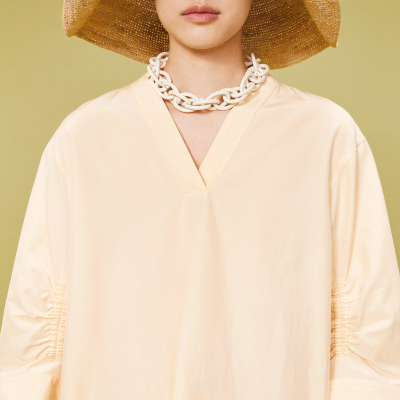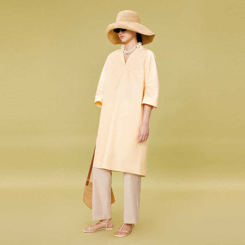 LESS夏季简约桑蚕真丝棉休闲宽松中袖V领连衣裙纯色套头2O4G12130