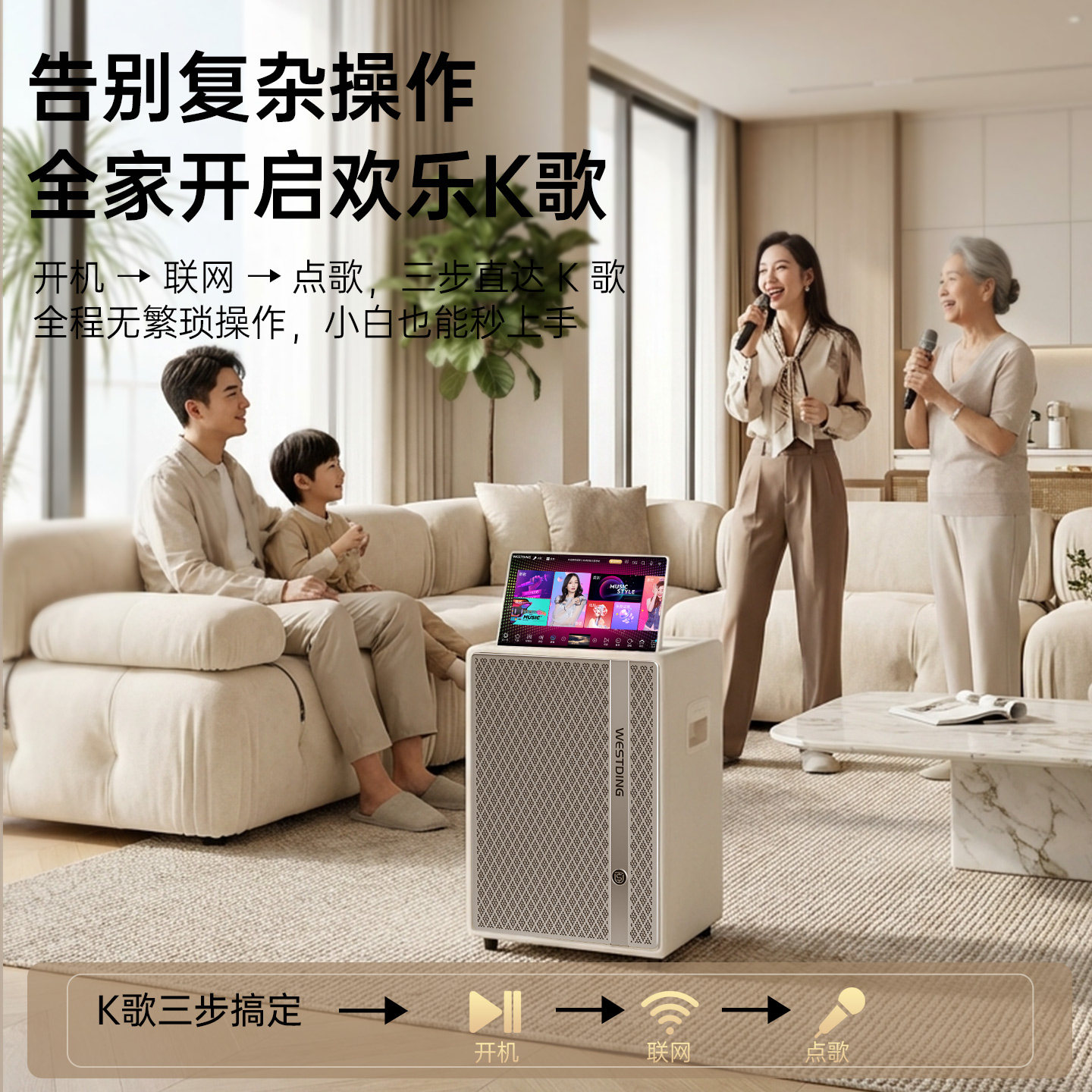 威斯汀S500高端家庭KTV音响套装广场舞音箱带显示屏k歌一体可充电