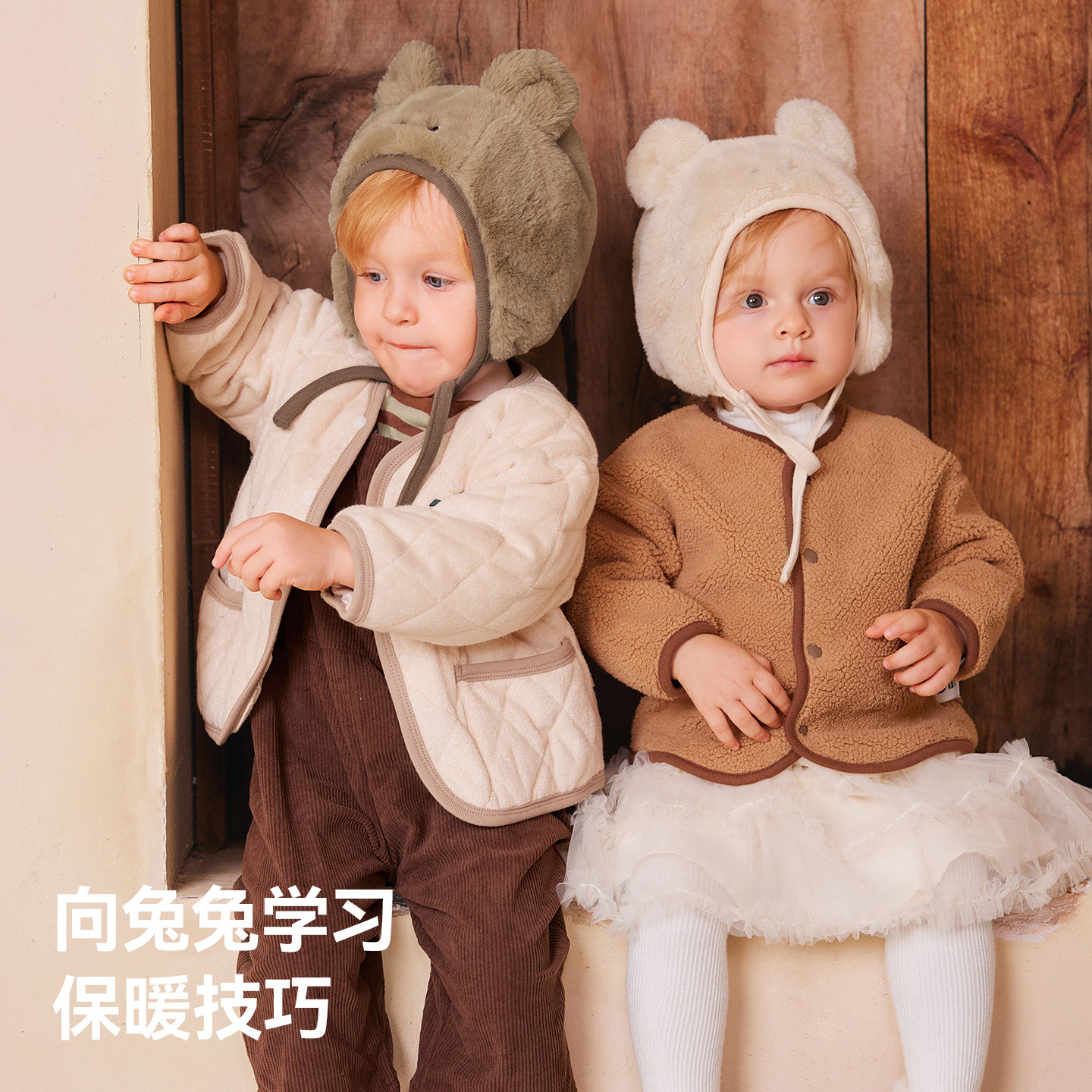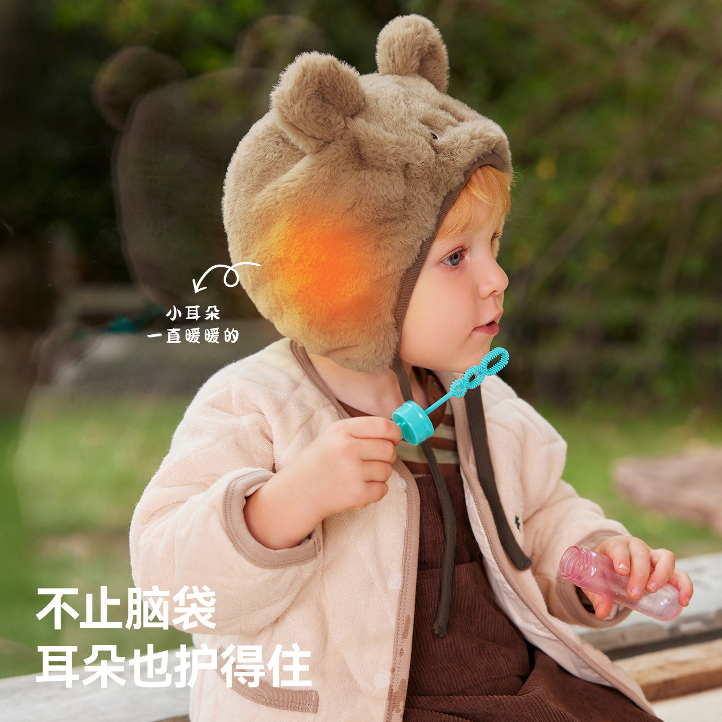 贝肽斯婴儿帽子冬季新款加绒加厚保暖防风男女宝宝儿童毛绒护耳帽