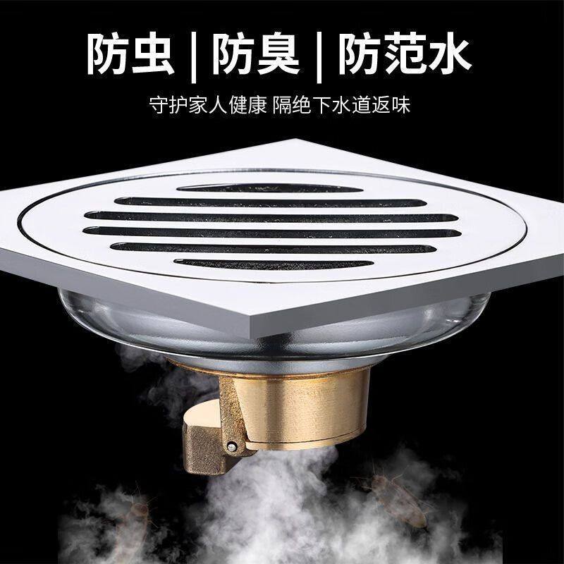 304不锈钢地漏加厚防臭器卫生间浴室下水道全铜地漏芯洗衣机方形