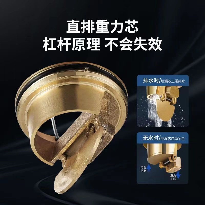 厨房卫浴淋浴地漏芯黄铜加厚弹跳防臭下水芯防堵防返水下水神器