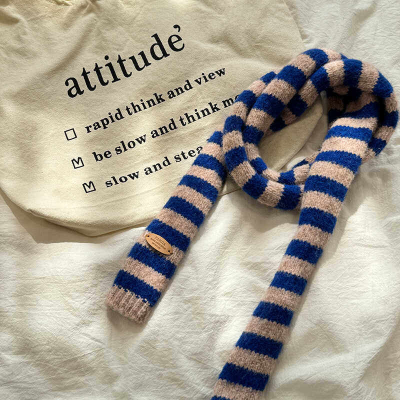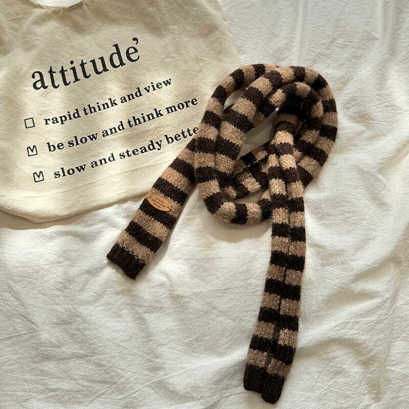 ins条纹三角针织小披肩围巾女秋冬季装饰护颈围脖保暖潮红色咖色