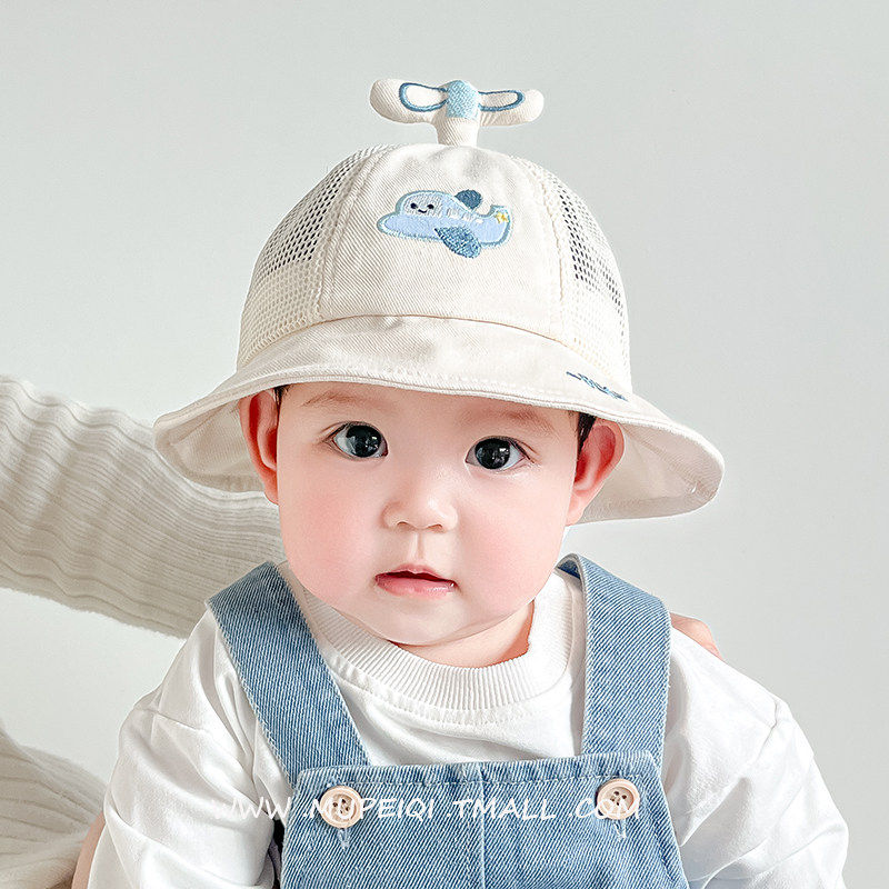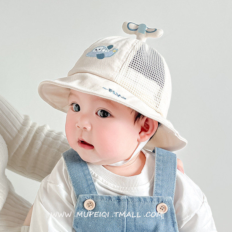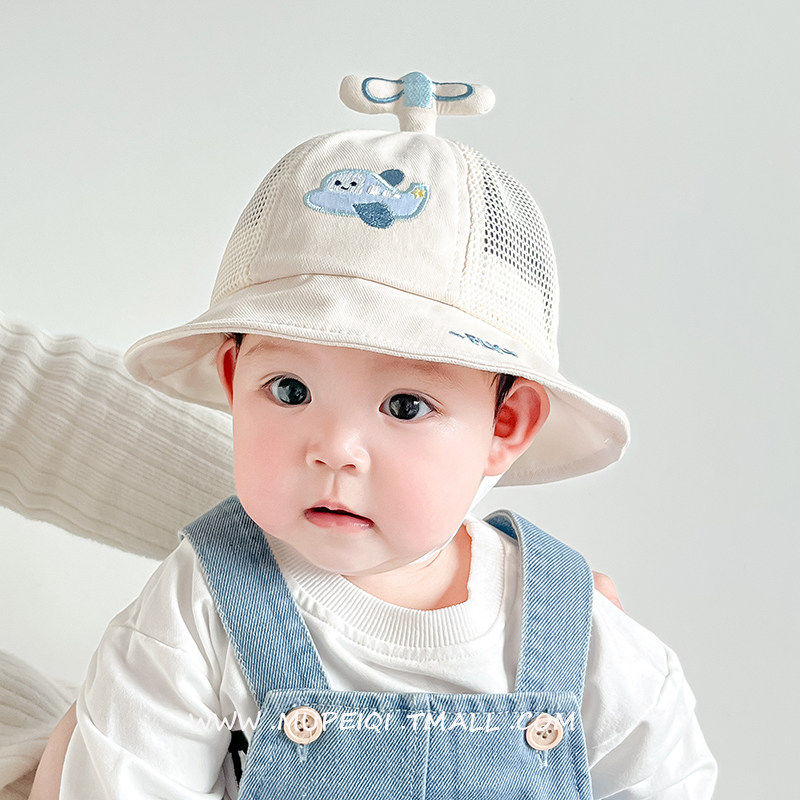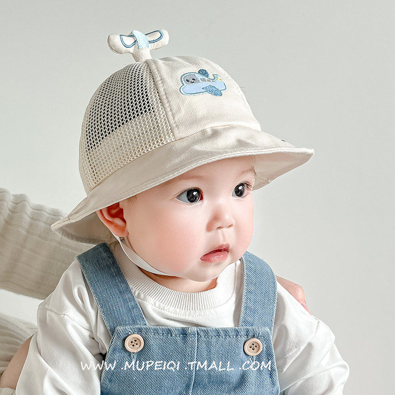 婴儿帽子夏季遮阳帽渔夫帽可爱男童女宝宝大檐防晒网帽太阳帽透气