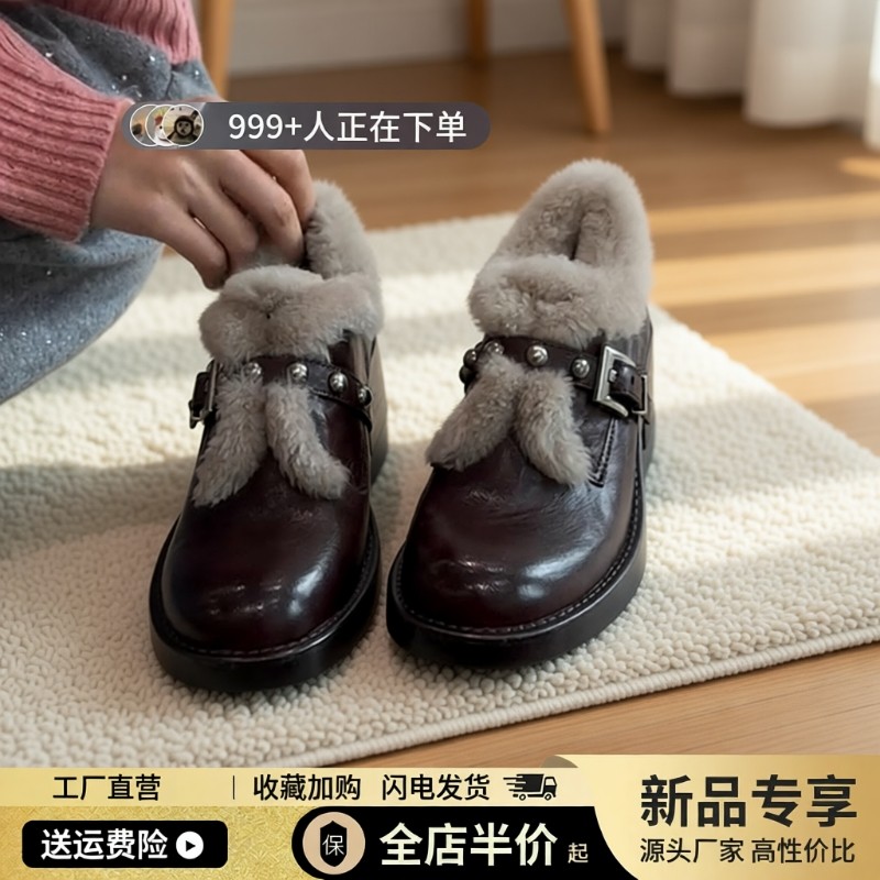 欧货真皮厚底小皮鞋女英伦风圆头加绒德比鞋小个子增高乐福鞋单鞋
