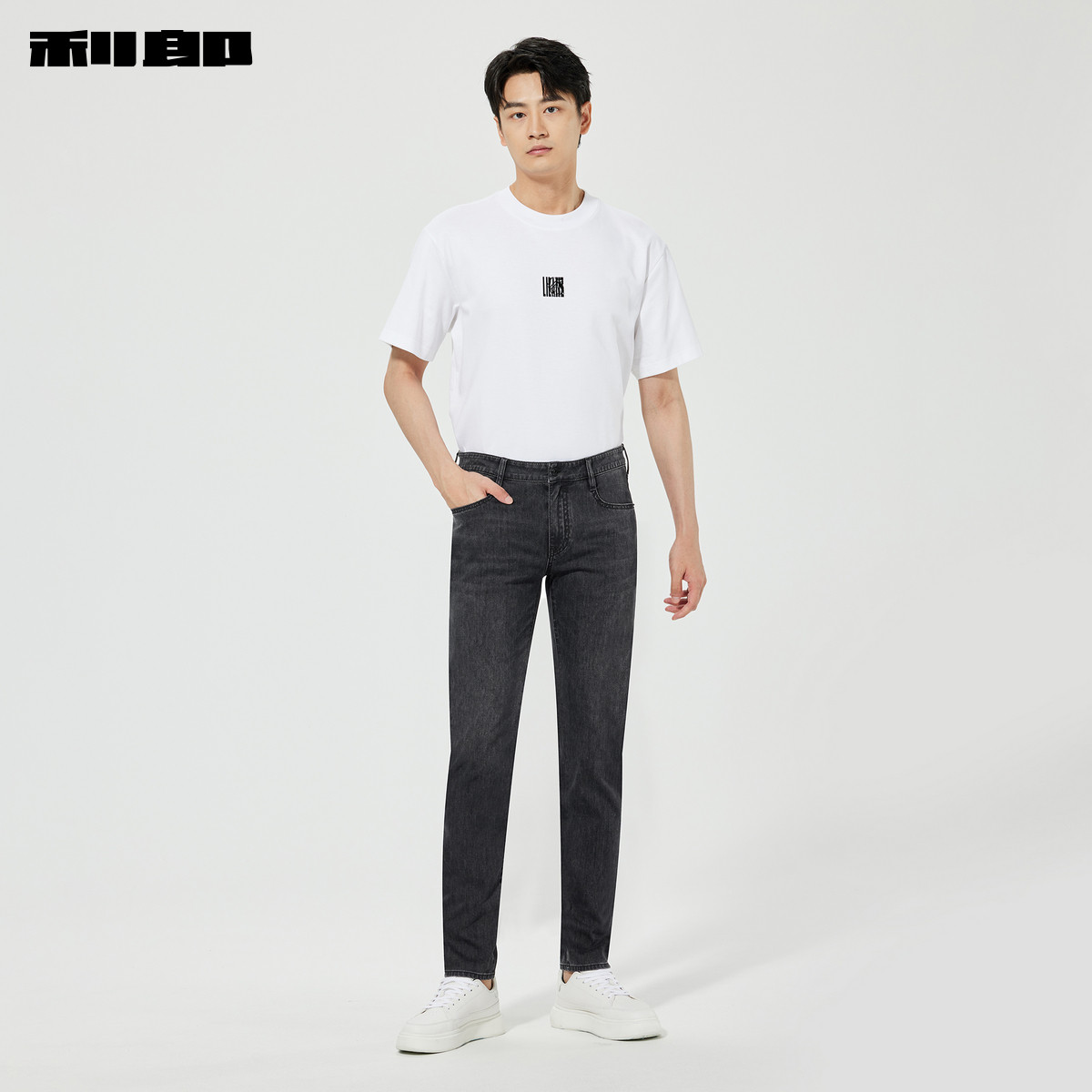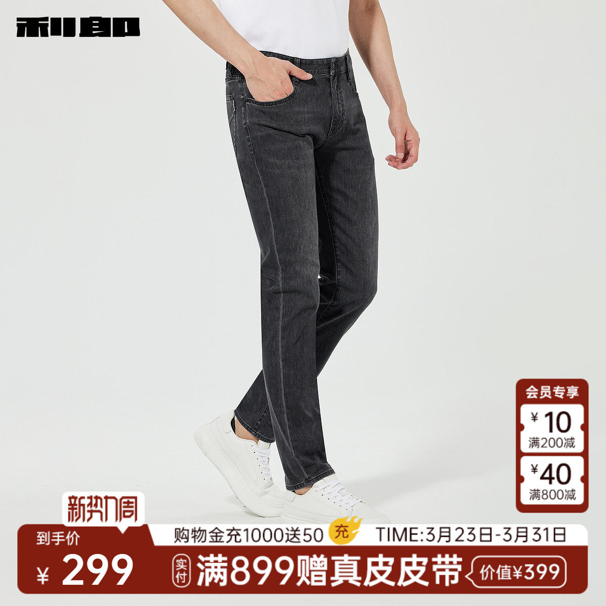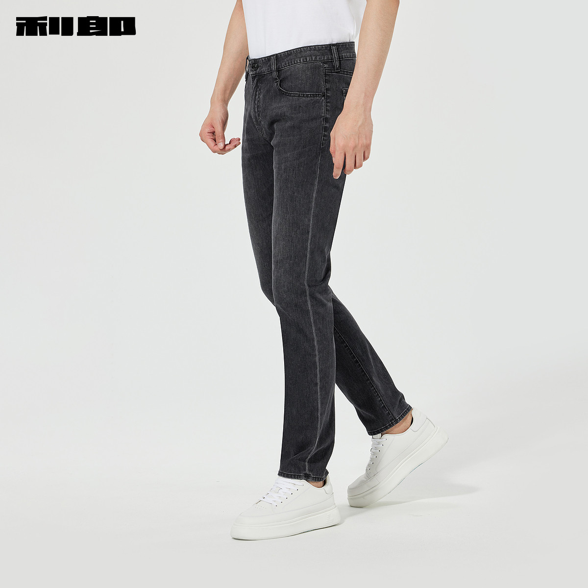 【四面弹】利郎官方 牛仔裤男士春季新款修身小脚裤黑色男装裤子