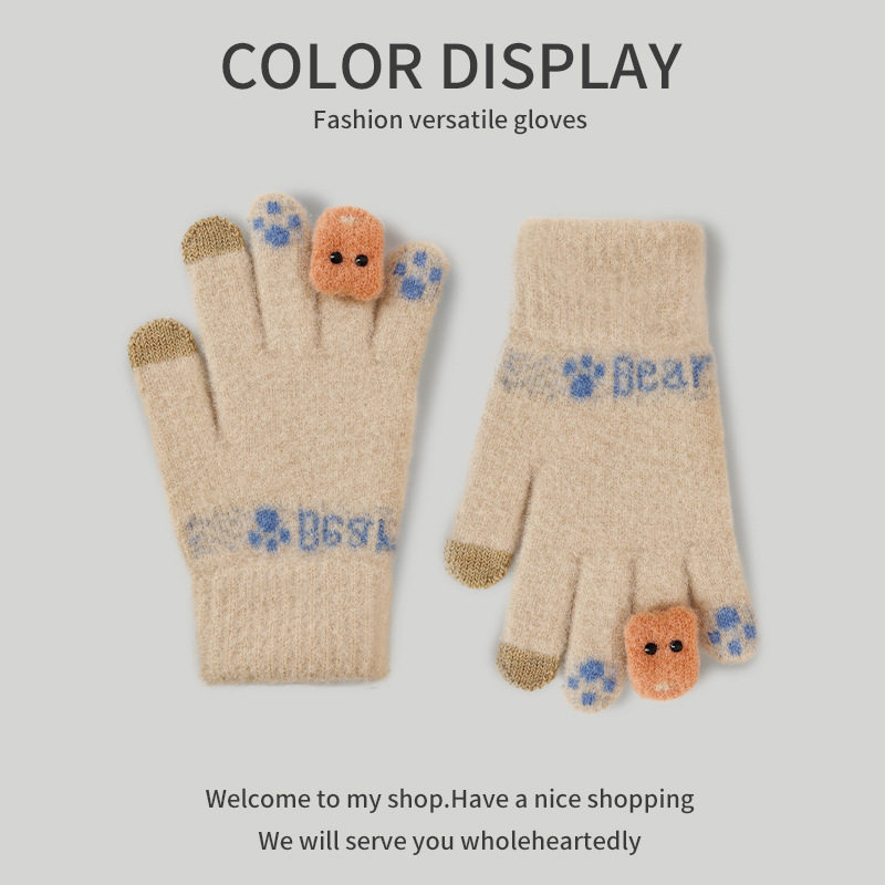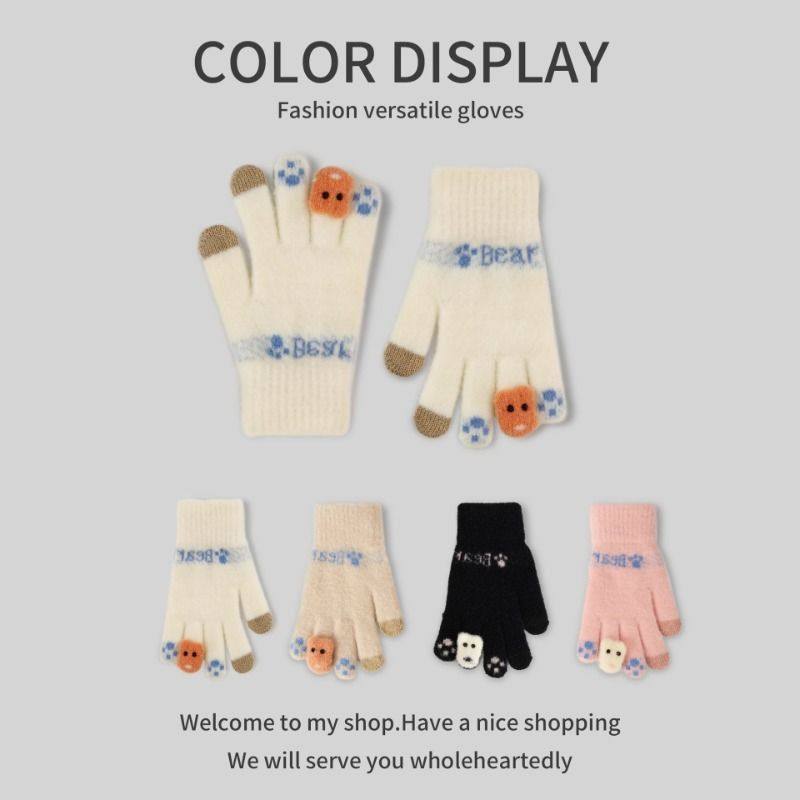 加厚触屏手套女士冬季可爱骑行保暖学生防寒针织毛线小手新款露指