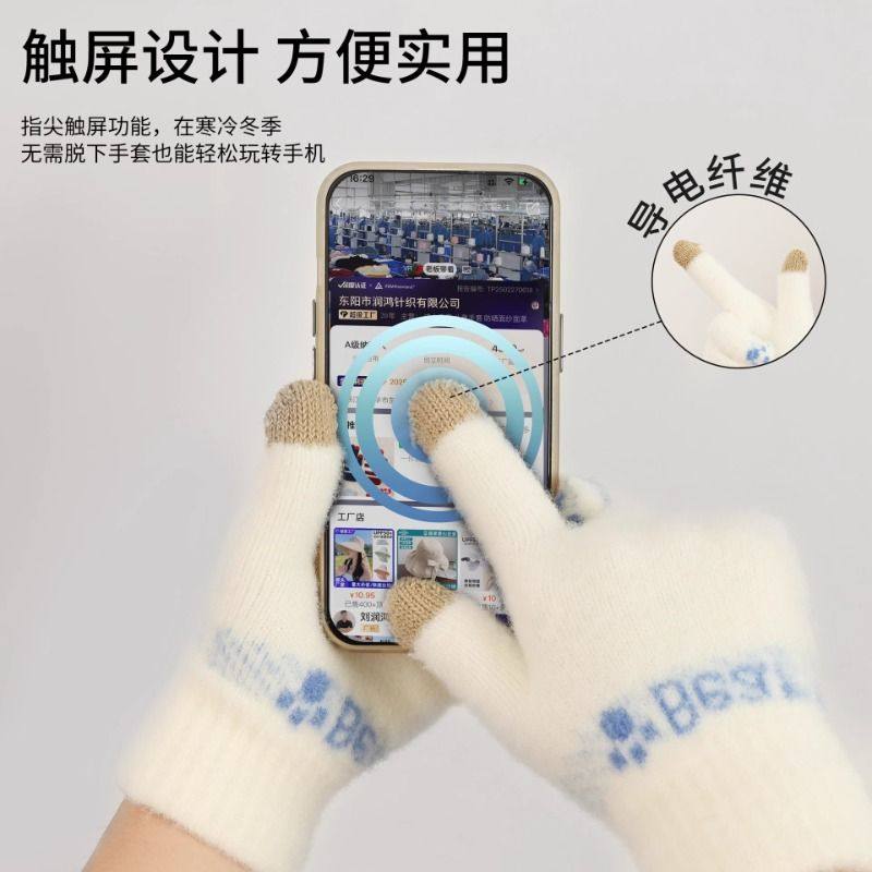 手套冬女可爱保暖加绒防寒韩版学生触屏针织提花保暖手套男骑行