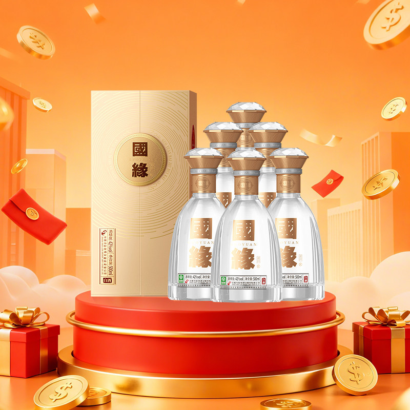 今世缘对开国缘500mL*6整箱装42度白酒送礼佳品纯粮酿造商务酒水