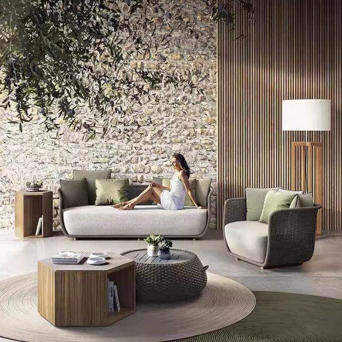 北欧户外沙发藤编庭院露天阳光房阳台防水防晒藤艺休闲客厅沙发椅