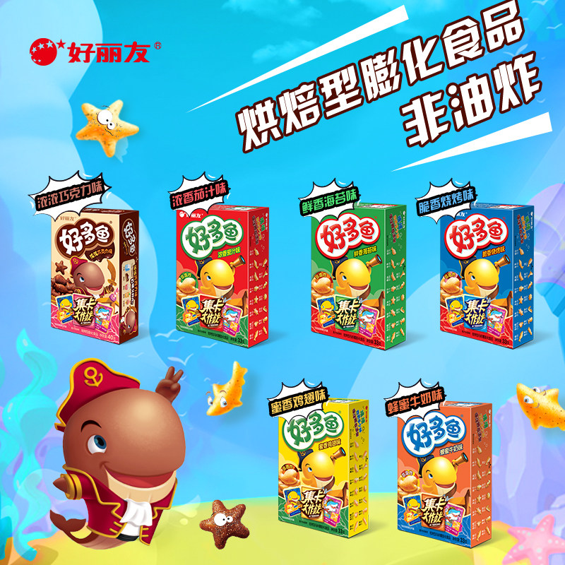 好多鱼33g盒装饼干零食品薯片条膨化解馋休闲小吃薯条巧克力海苔