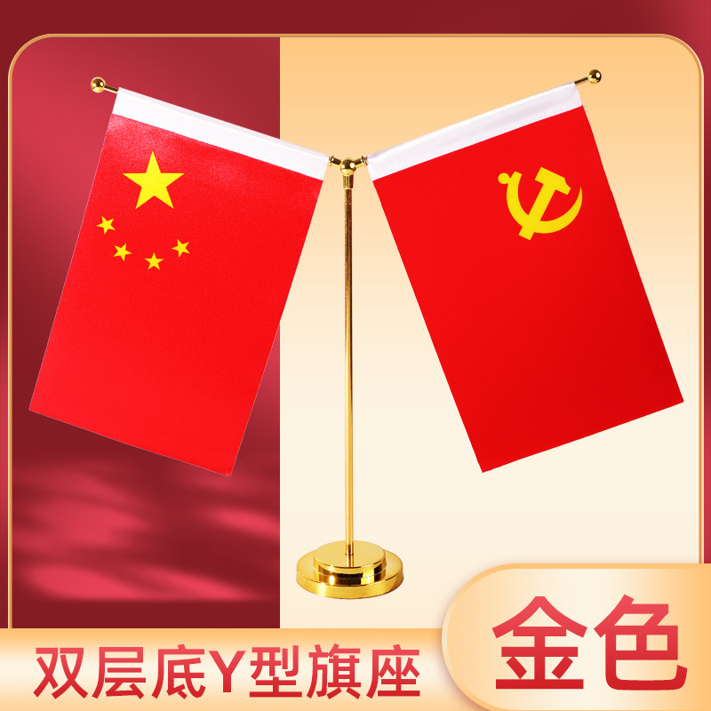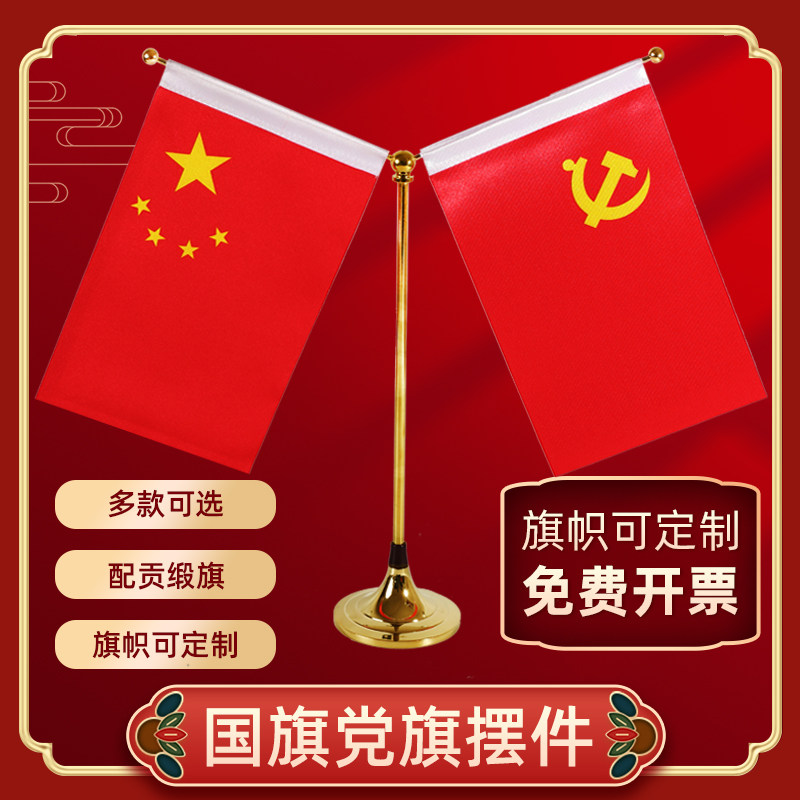 党旗国旗桌面摆件 国旗小红旗办公室桌旗 会议室桌面装饰旗座办公桌旗子 五星红旗小国旗 桌上旗杆室内台旗