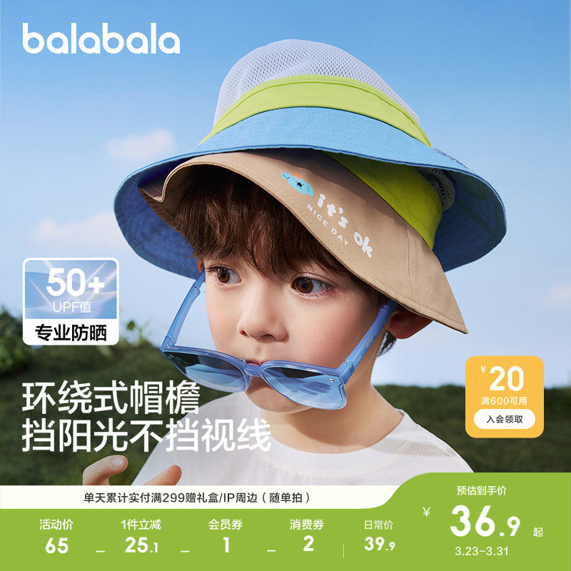 巴拉巴拉儿童渔夫帽夏季新款男女童帽子防晒遮阳舒适便携时尚休闲