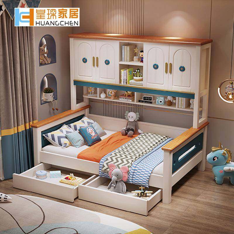 学生北欧书柜一体儿童床卧室家具衣柜组合式床青少年柜式床直销