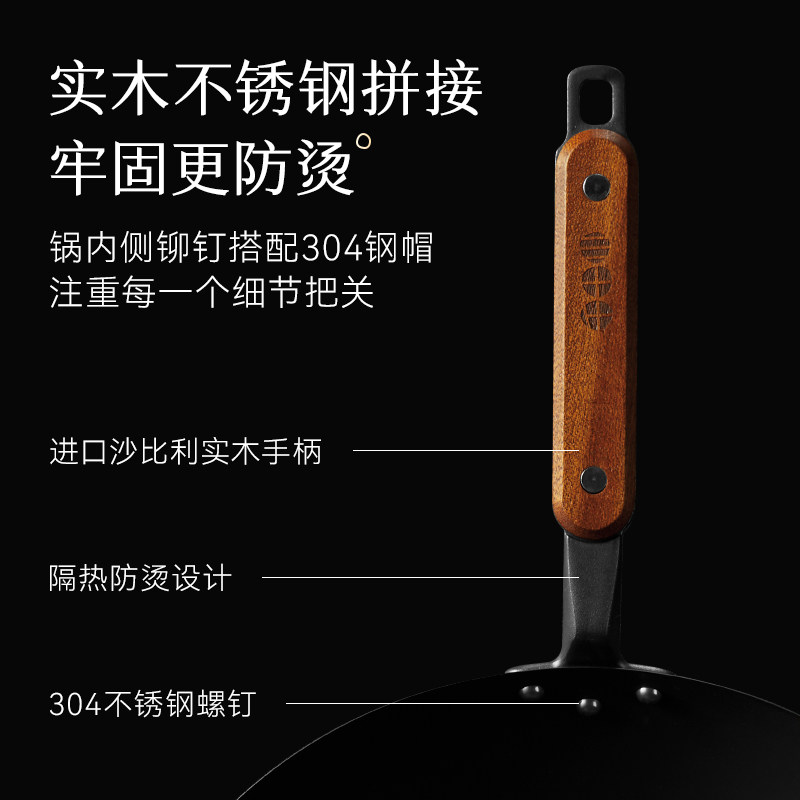 康巴赫尊享版真钛0涂层炒锅无涂层家用不粘锅燃气灶不锈钢炒菜锅
