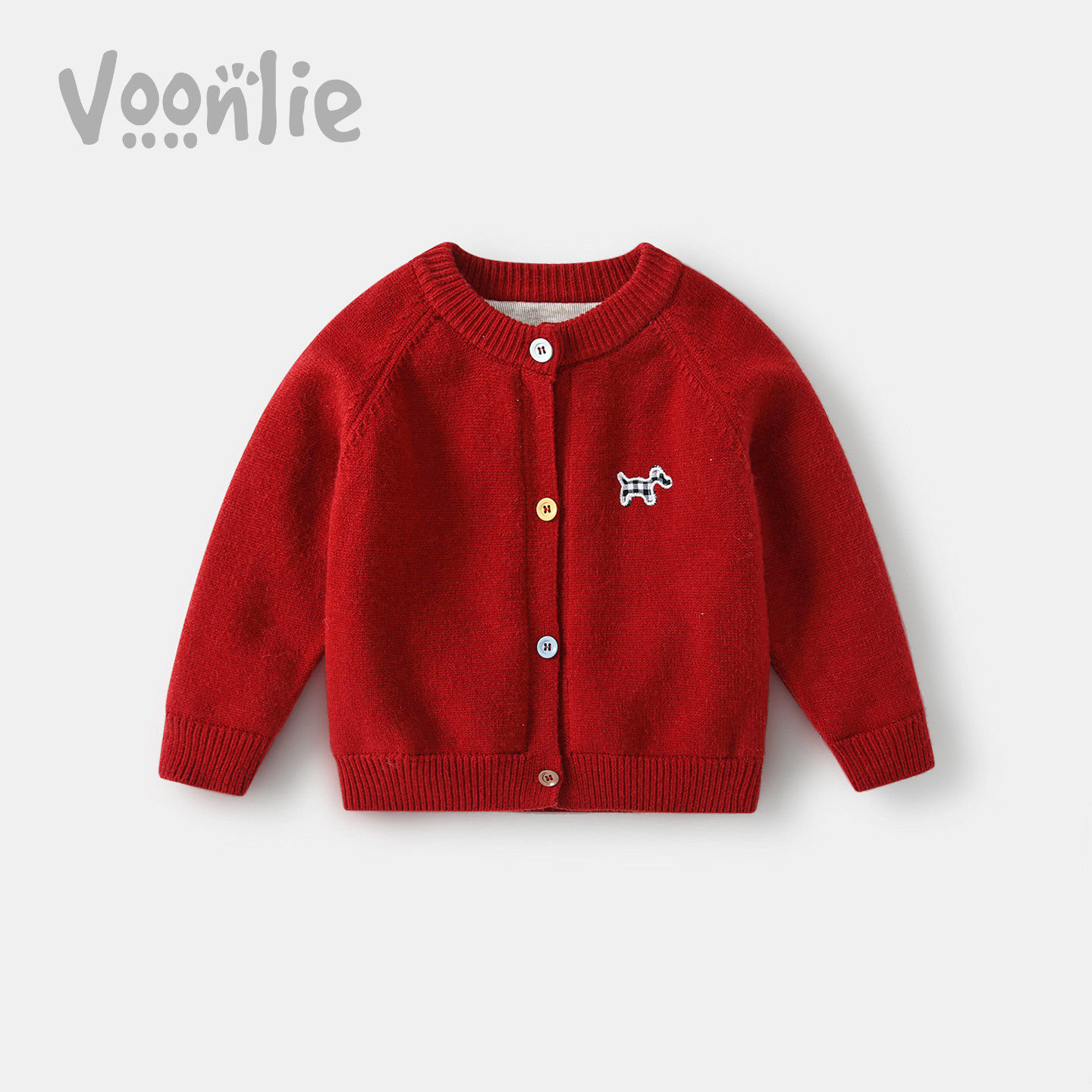 凡猎女童针织开衫儿童德绒毛衣外套男宝宝红色拜年服上衣加绒薄款