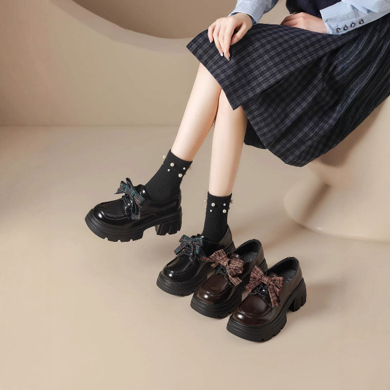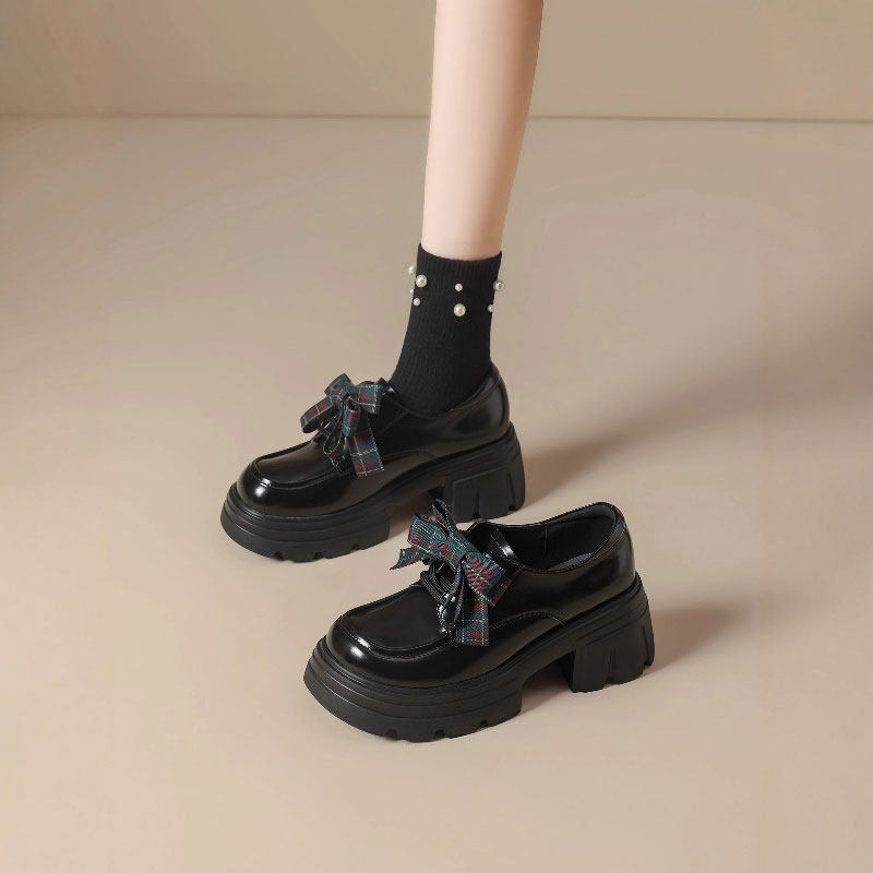真皮厚底乐福鞋女2025春秋新款季松糕黑色百搭单鞋jk英伦风小皮鞋