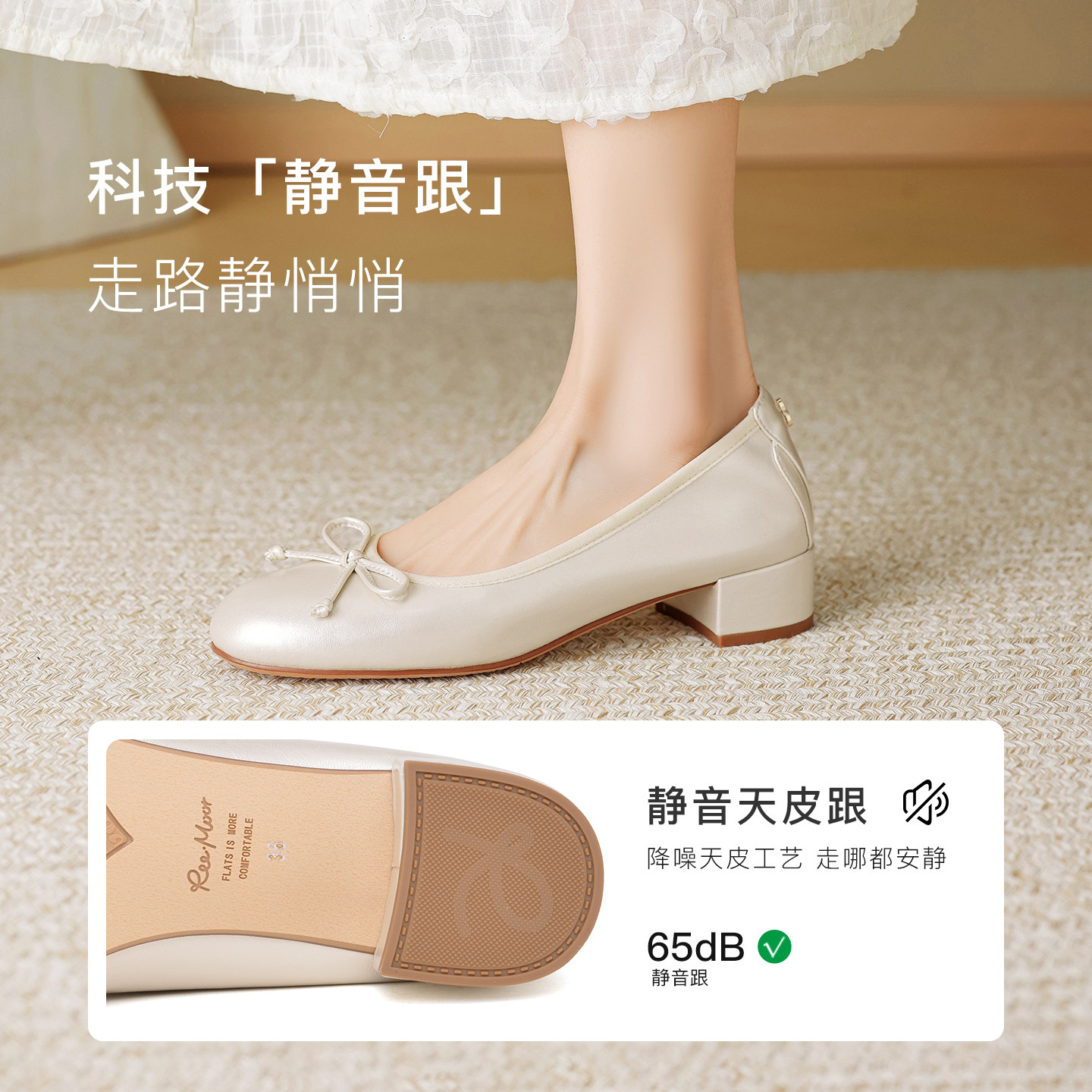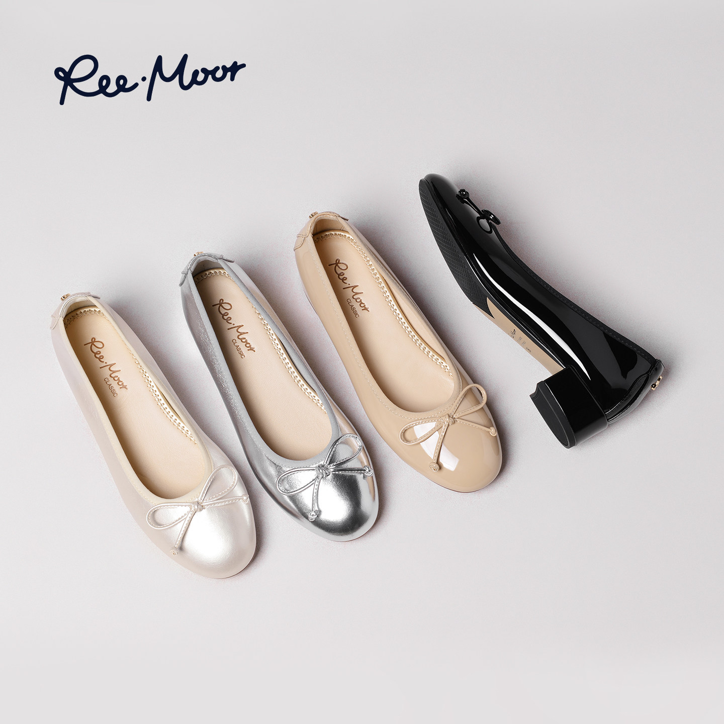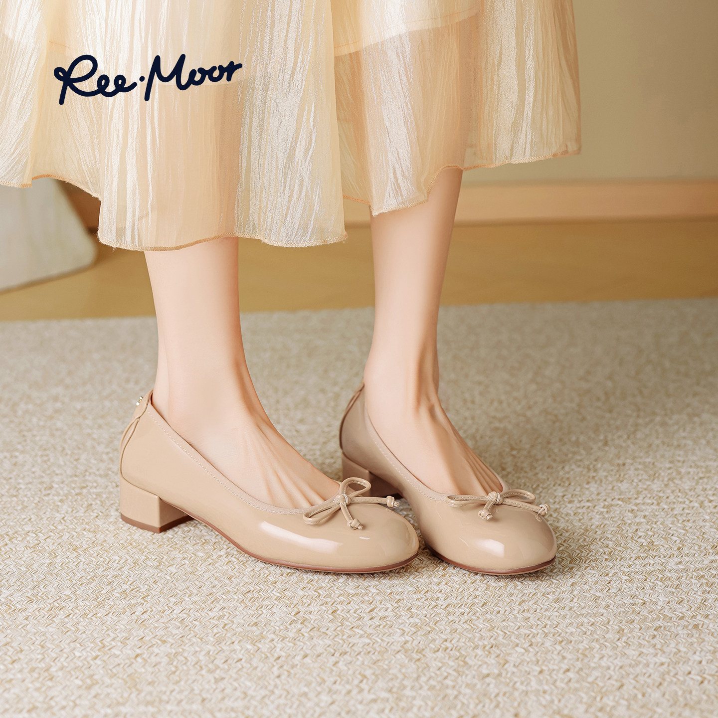 REEMOOR睿慕2026春季新款法式蝴蝶结女浅口方头粗跟浅口单鞋