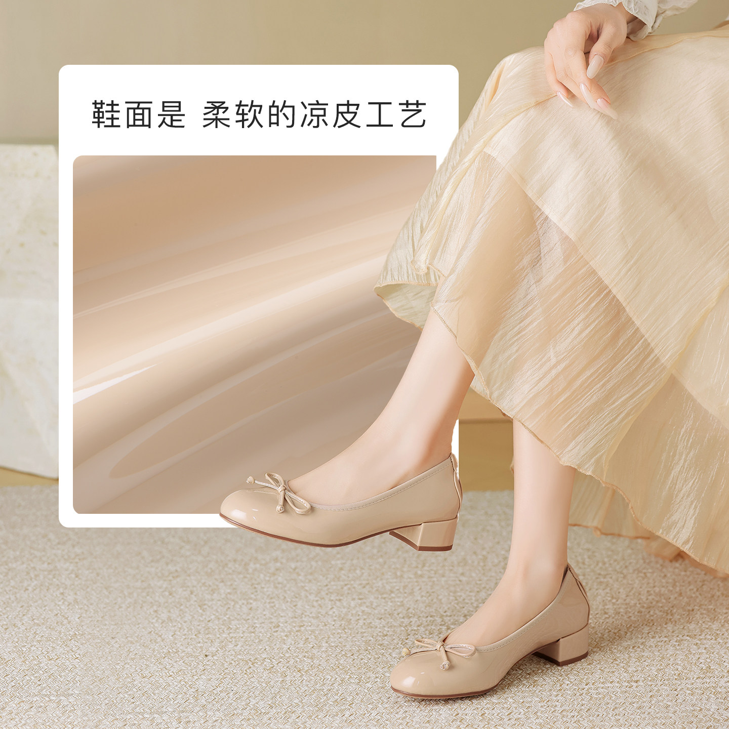 【明星同款|静音系列】千百度练习曲裸色高跟鞋真皮通勤法式单鞋