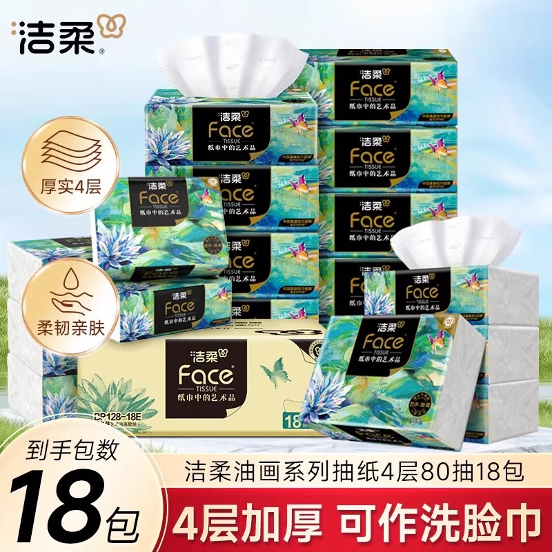 洁柔艺术油画系列抽纸4层加厚自然无香可湿水卫生纸餐巾纸面巾纸