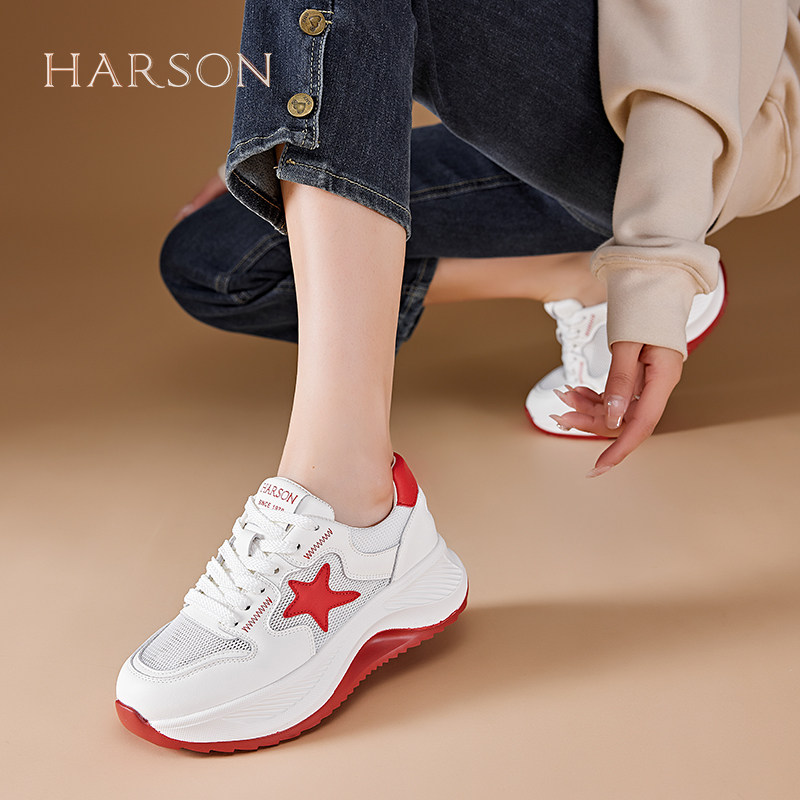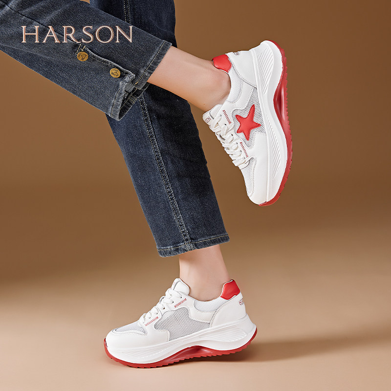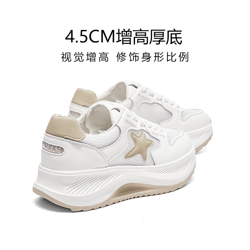 哈森女鞋2025新款夏季透气百搭厚底增高休闲鞋子显脚小老爹鞋女款