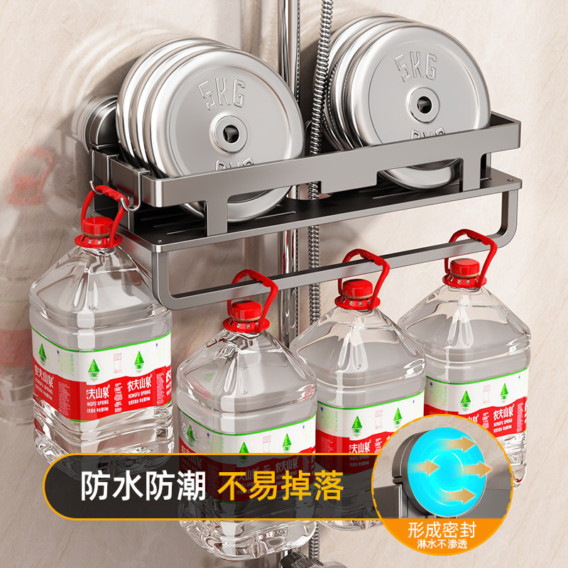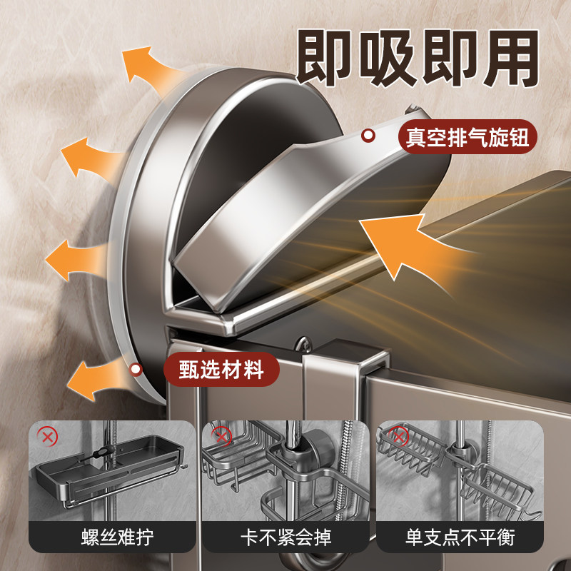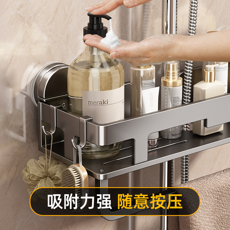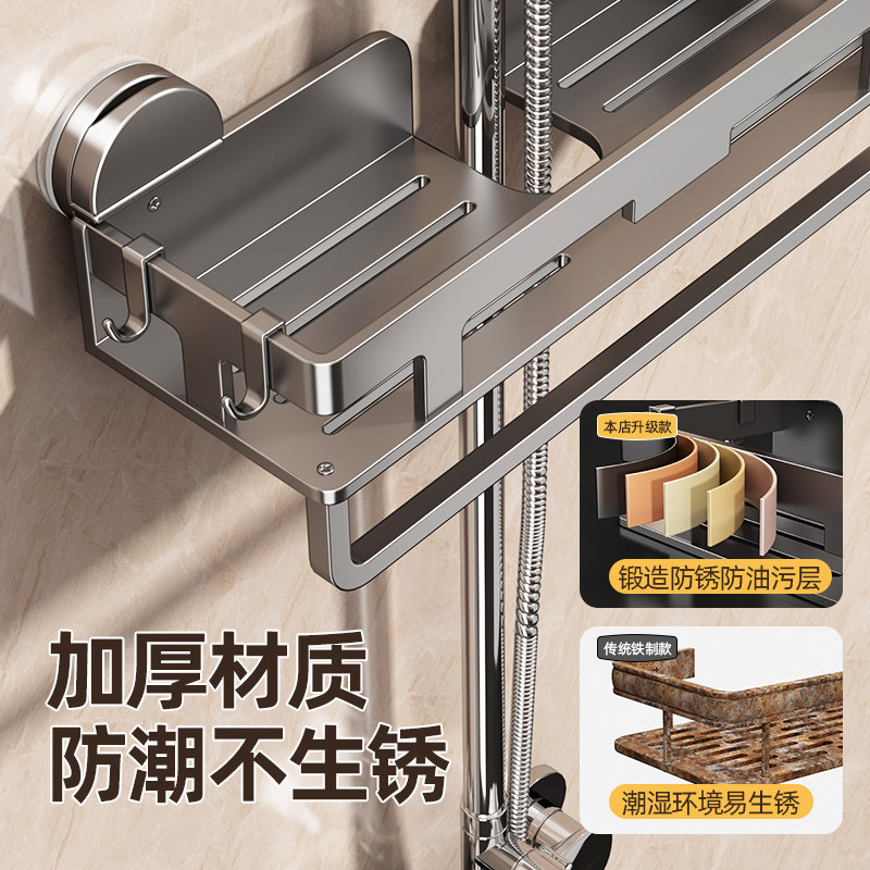吸盘浴室花洒杆支架免打孔卫生间置物架淋浴房沐浴露洗发水收纳架