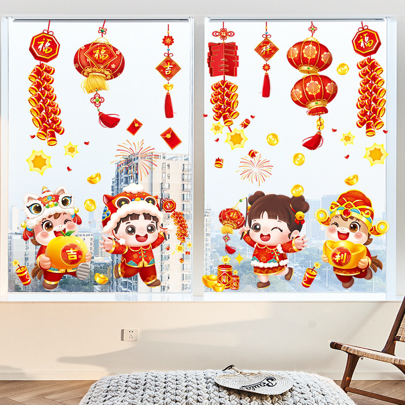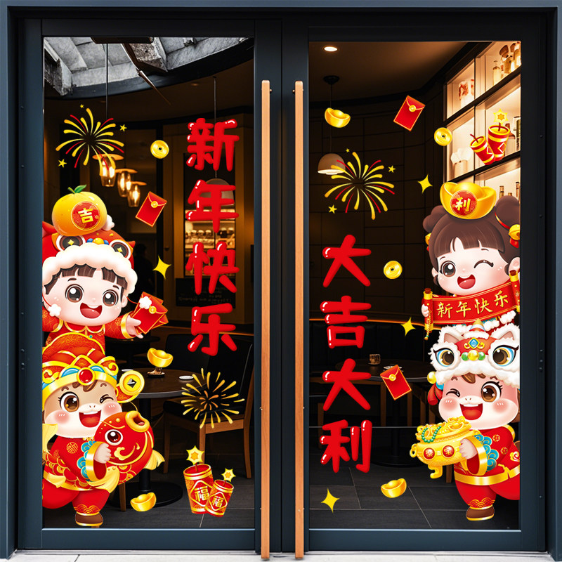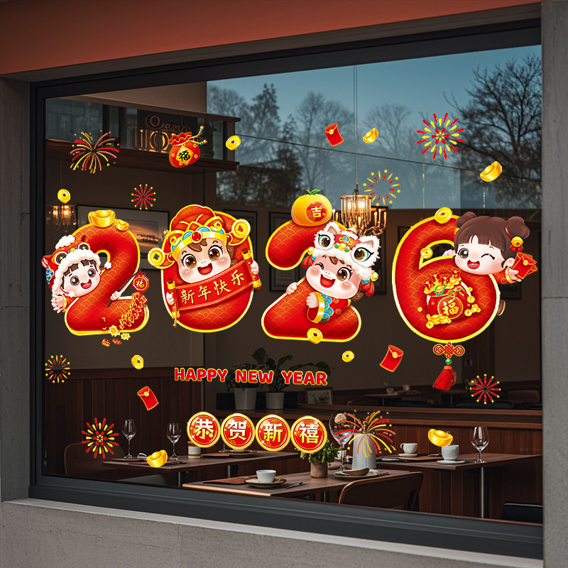 2026新年静电贴玻璃门贴窗贴春节窗花新款贴纸贴画马年过年装饰品