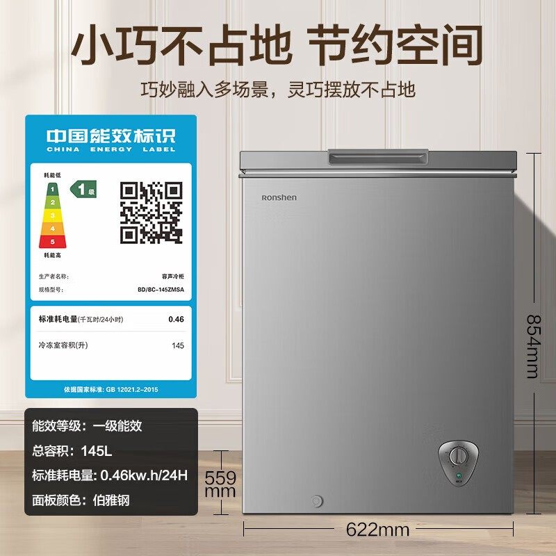 容声 145升单门冰箱节能减霜除菌家用单温冷柜