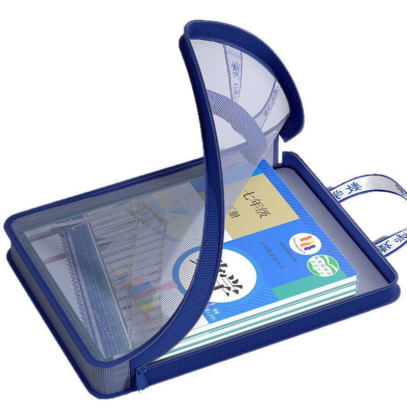 L型科目分类袋分科文件袋拉链式初中生专用学科小学生学习作业手提拎书袋课本分类大容量收纳袋网纱双层高中