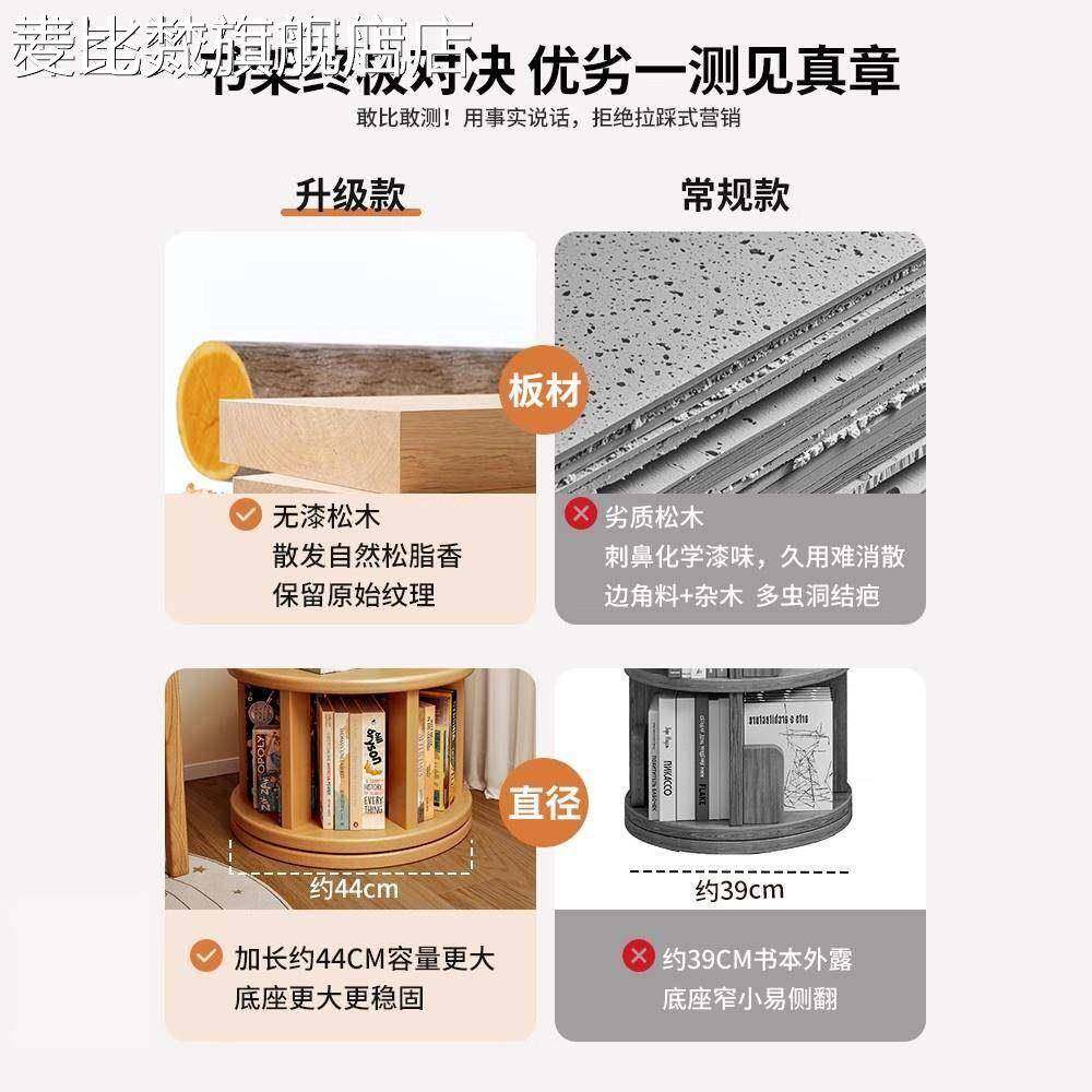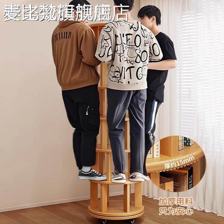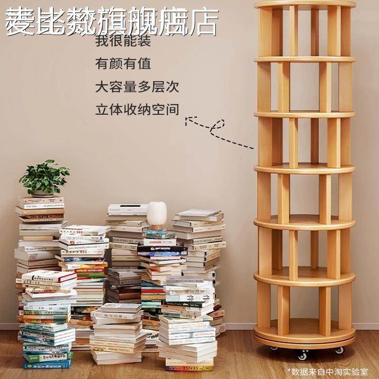 麦比梵旋转书架360度实木色圆形书柜落地靠墙可移动客厅儿童绘本置物架床笠拉车