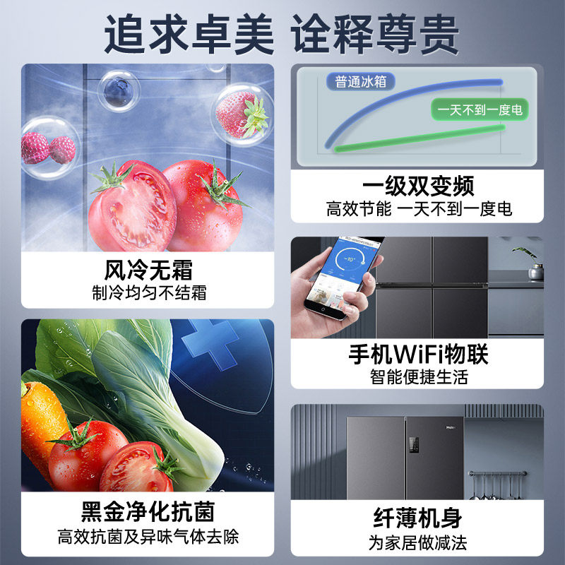 以旧换新补贴海尔539L十字双开四门一级能效无霜电冰箱家用大容量