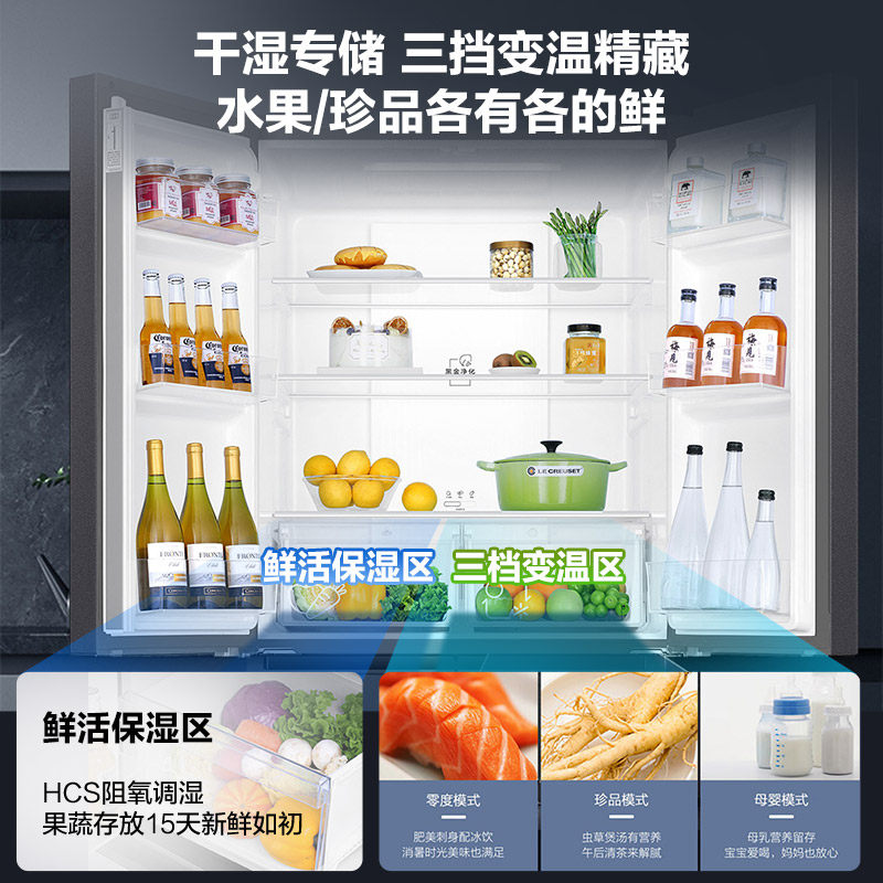 政府补贴海尔出品统帅538L对开双开门无霜一级变频大容量家用冰箱