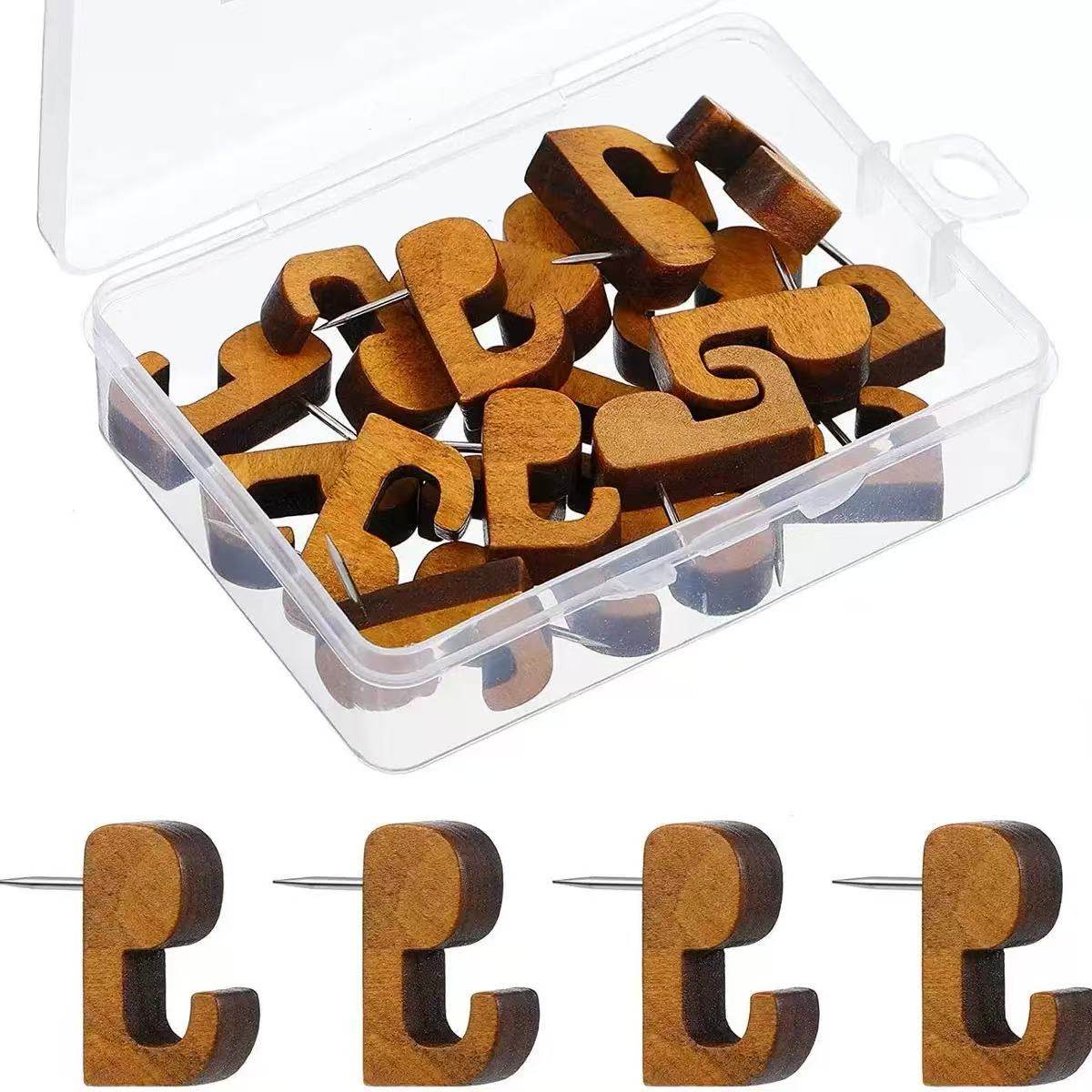 20枚/盒装创意实木挂钩钉图钉软木板固定办公手工装饰墙钉工字钉