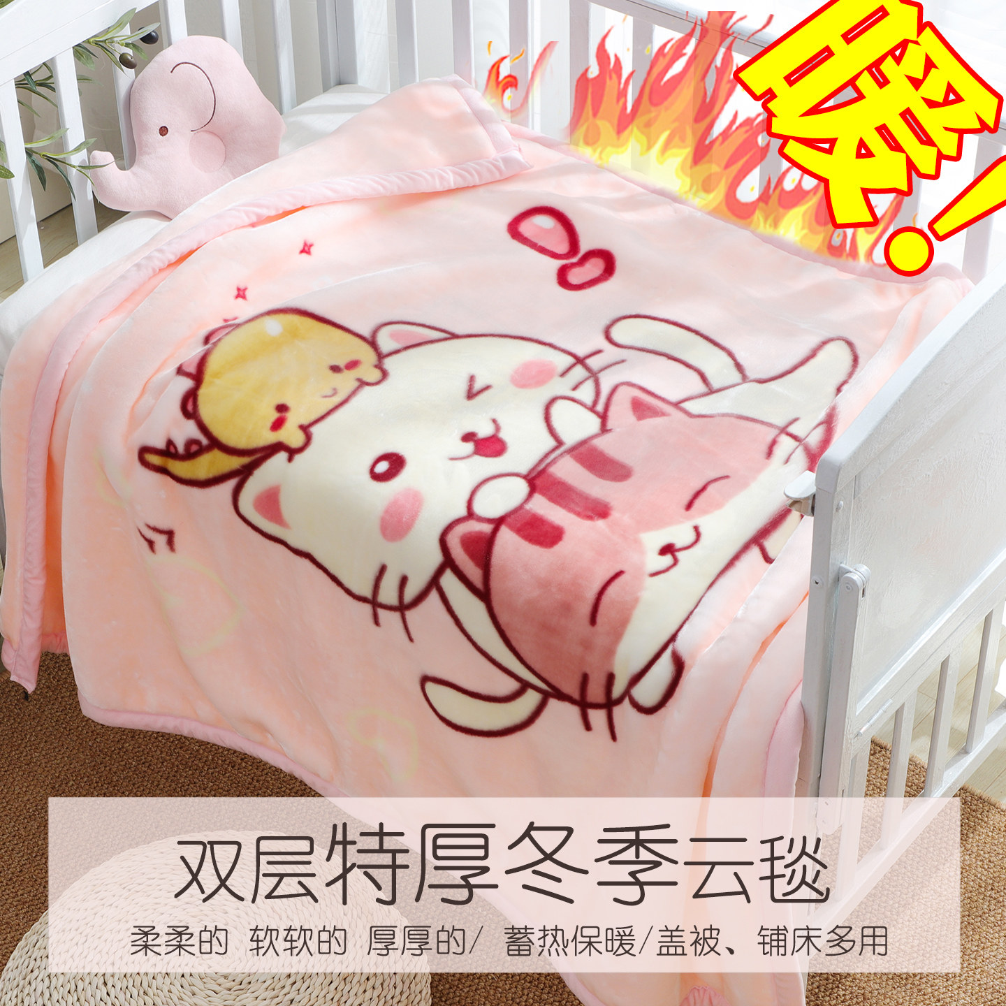 儿童毛毯加厚冬婴儿幼儿园午睡外出宝宝铺床垫小被子拉舍尔毯子