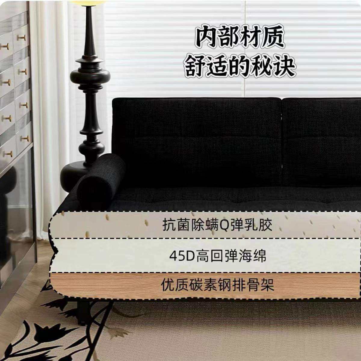 黑色棉麻布艺单人双人小户型客厅可折叠沙发床一体两用2025新款