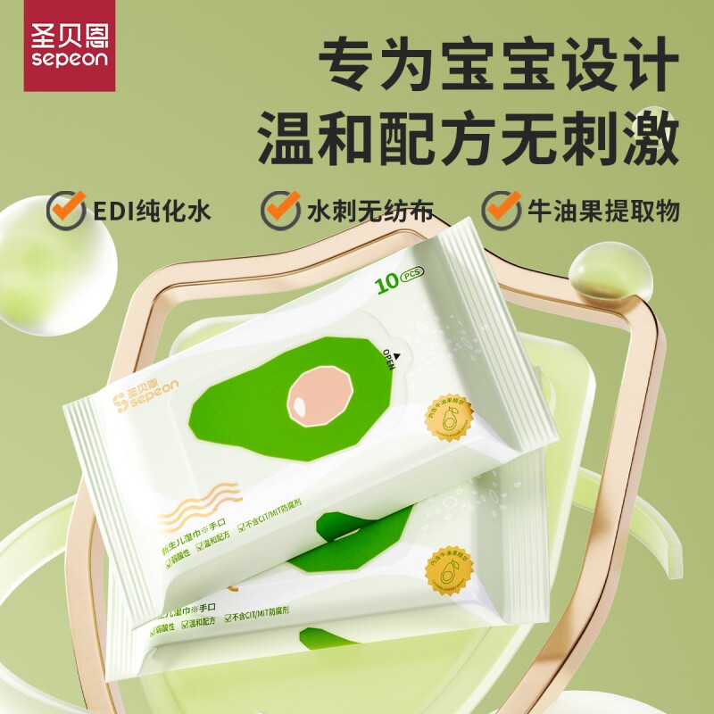 便携湿巾湿纸巾3包*10抽圣贝恩婴儿手口女学生随身宝宝清洁国货