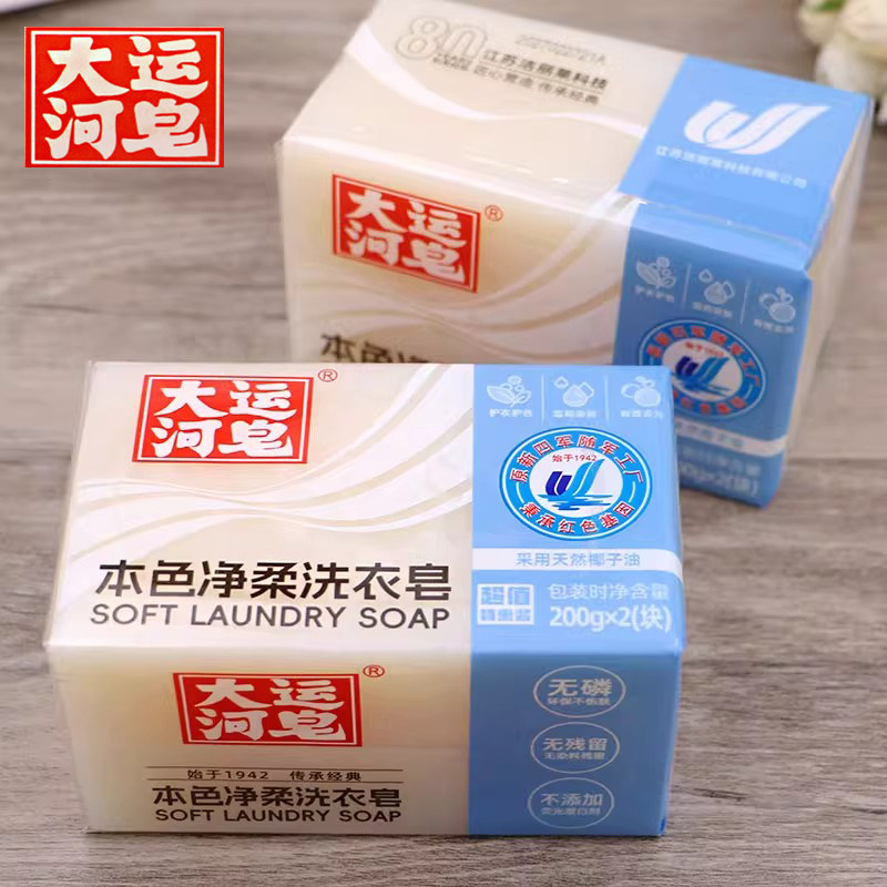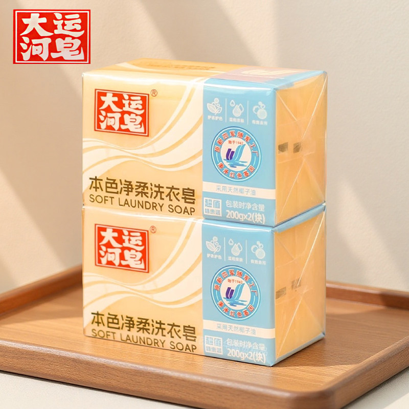 大运河皂本色净柔洗衣皂200g护衣护色无磷去污家庭实惠装内衣肥皂