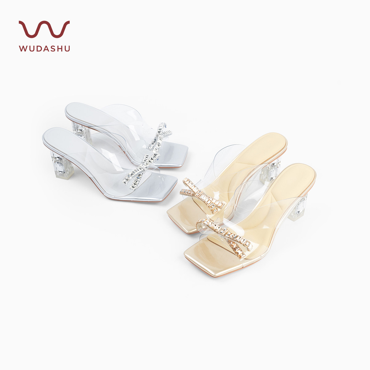 吴大叔红云鞋2026夏气垫缓震水晶高跟懒人拖一字拖沙滩水钻女拖鞋