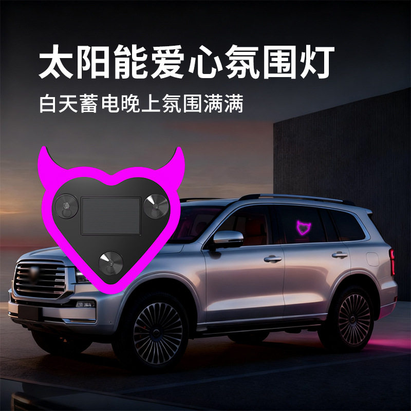 汽车太阳能免接线LED侧窗三角窗爱心灯霓虹发光C柱氛围灯车载装饰灯